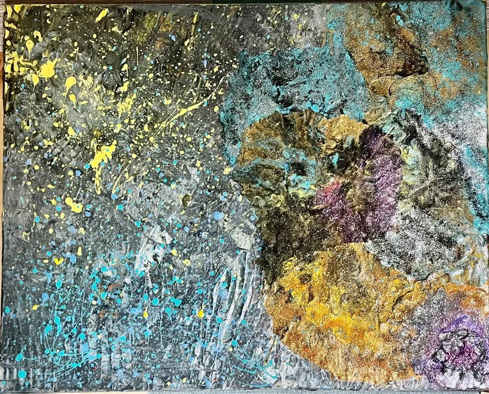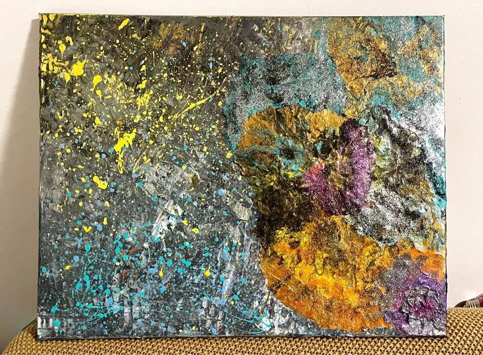 55Acrylic painting with sequins. Length 50.5 cm, width 40 cm.