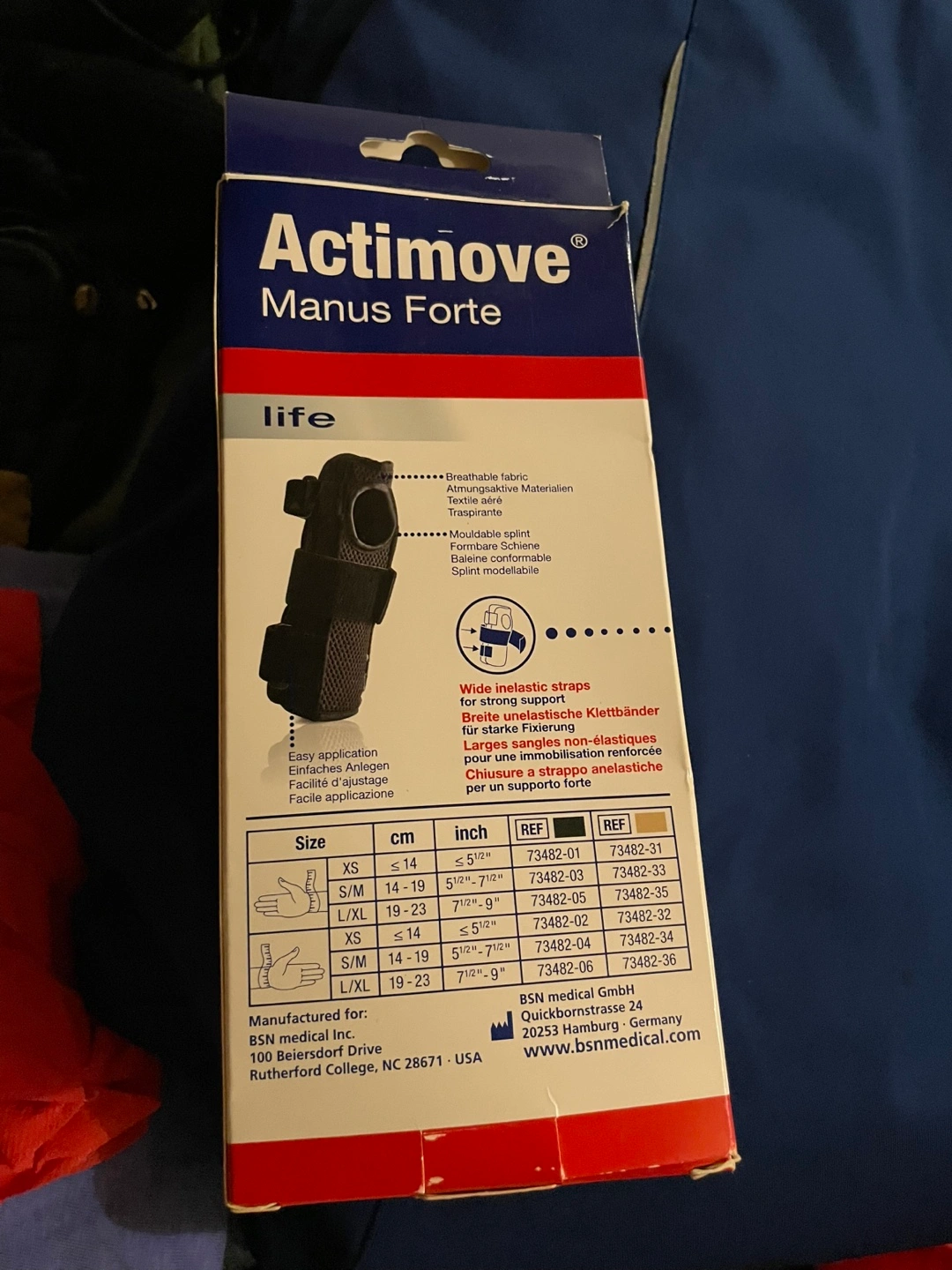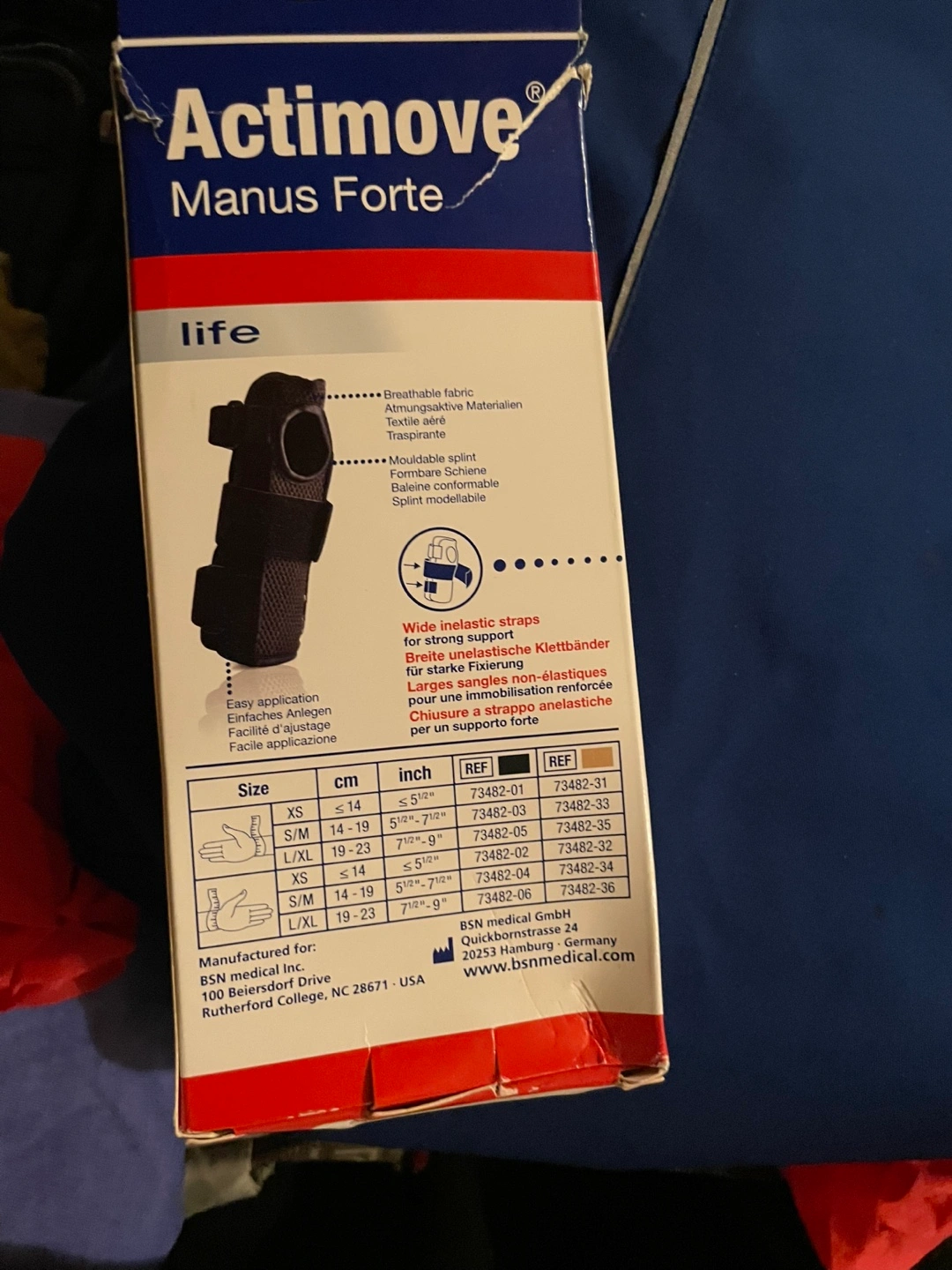 Brand new, available for both hands.$10 for each hand. Pickup Westney and magill in Ajax. Selling an Actimove Manus Forte wrist brace in size S/M. It's designed to provide support and stability for your wrist. Great for everyday use or recovery!