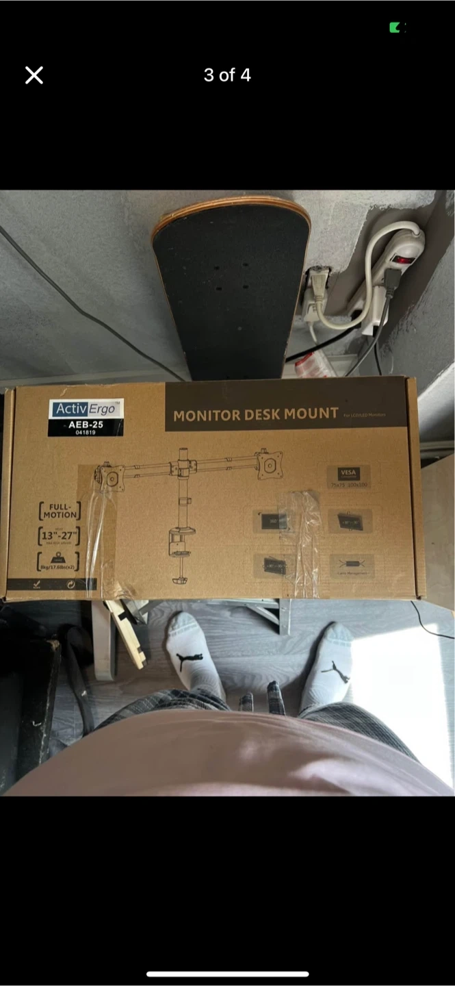 17Selling an Activ Ergo AEB-25 monitor desk mount! It's a full motion mount, suitable for LED/LCD monitors from 13" to 27". It's VESA compatible (75x75, 100x100) and supports cable management.