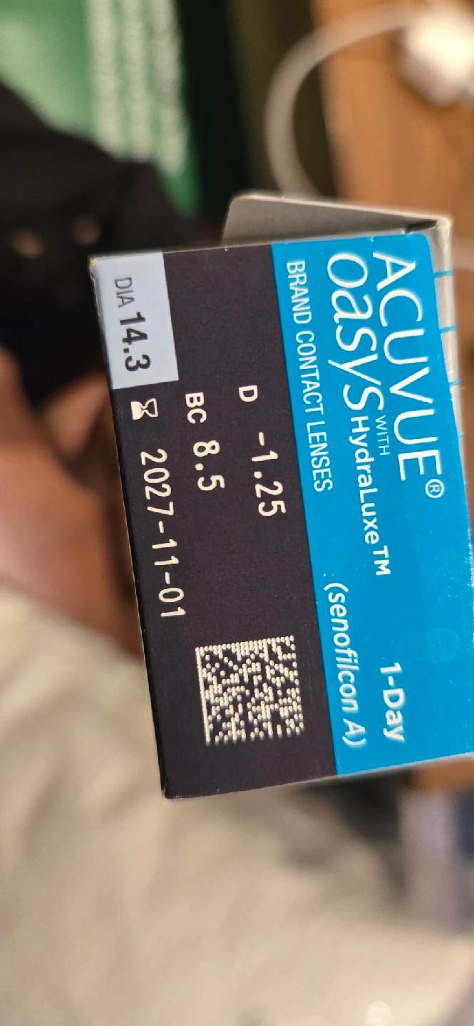 88Acuvue Oasys 1-Day contact lenses. They are diopters -1.25. Expiry date is 2027 November 01 This is opened box that has 10 pairs left.