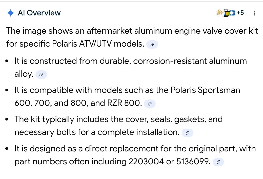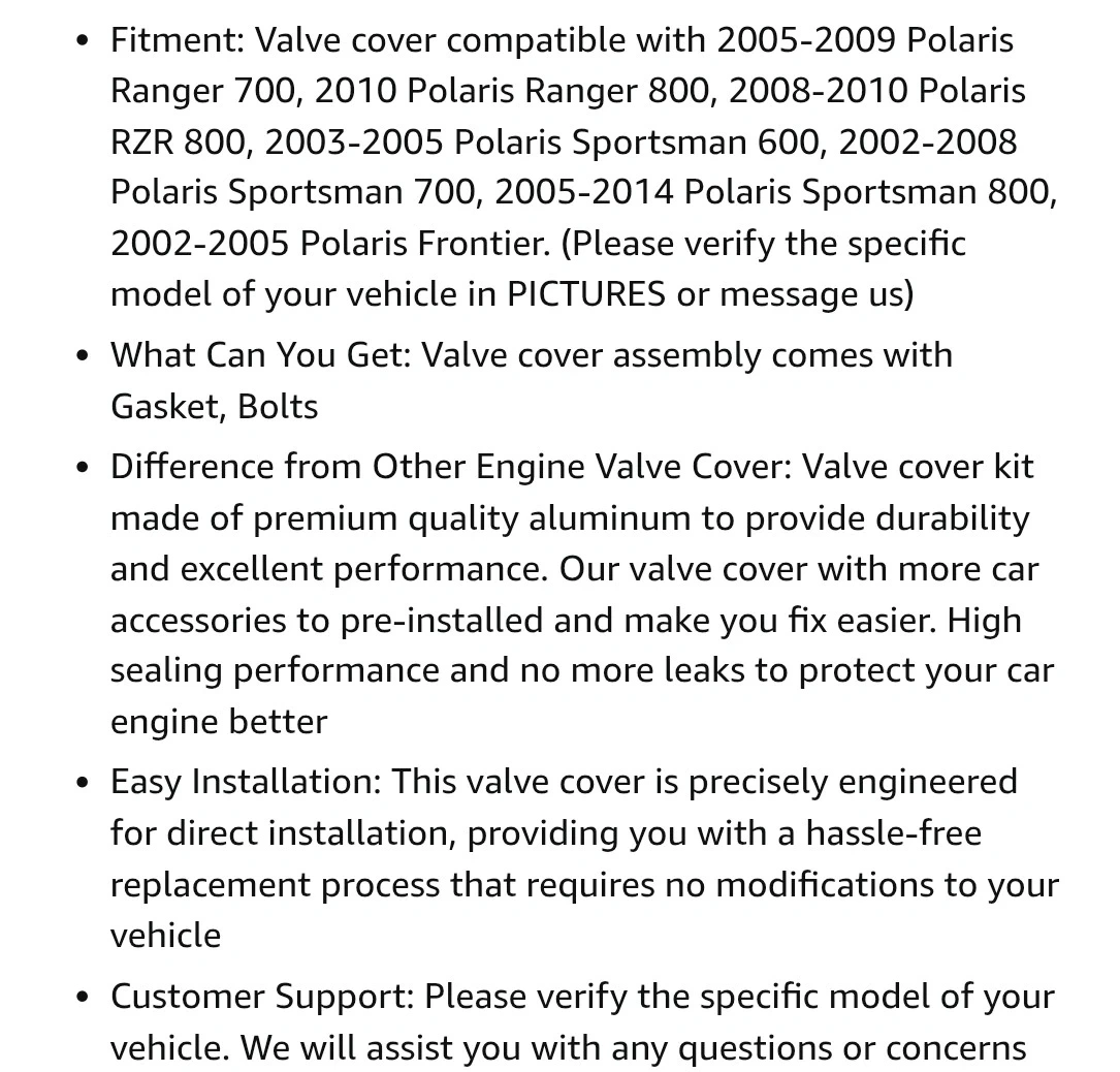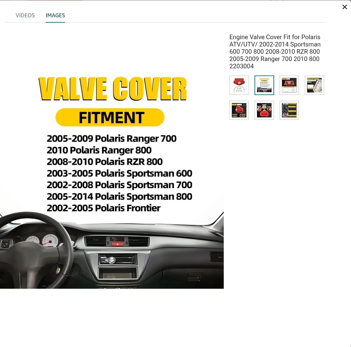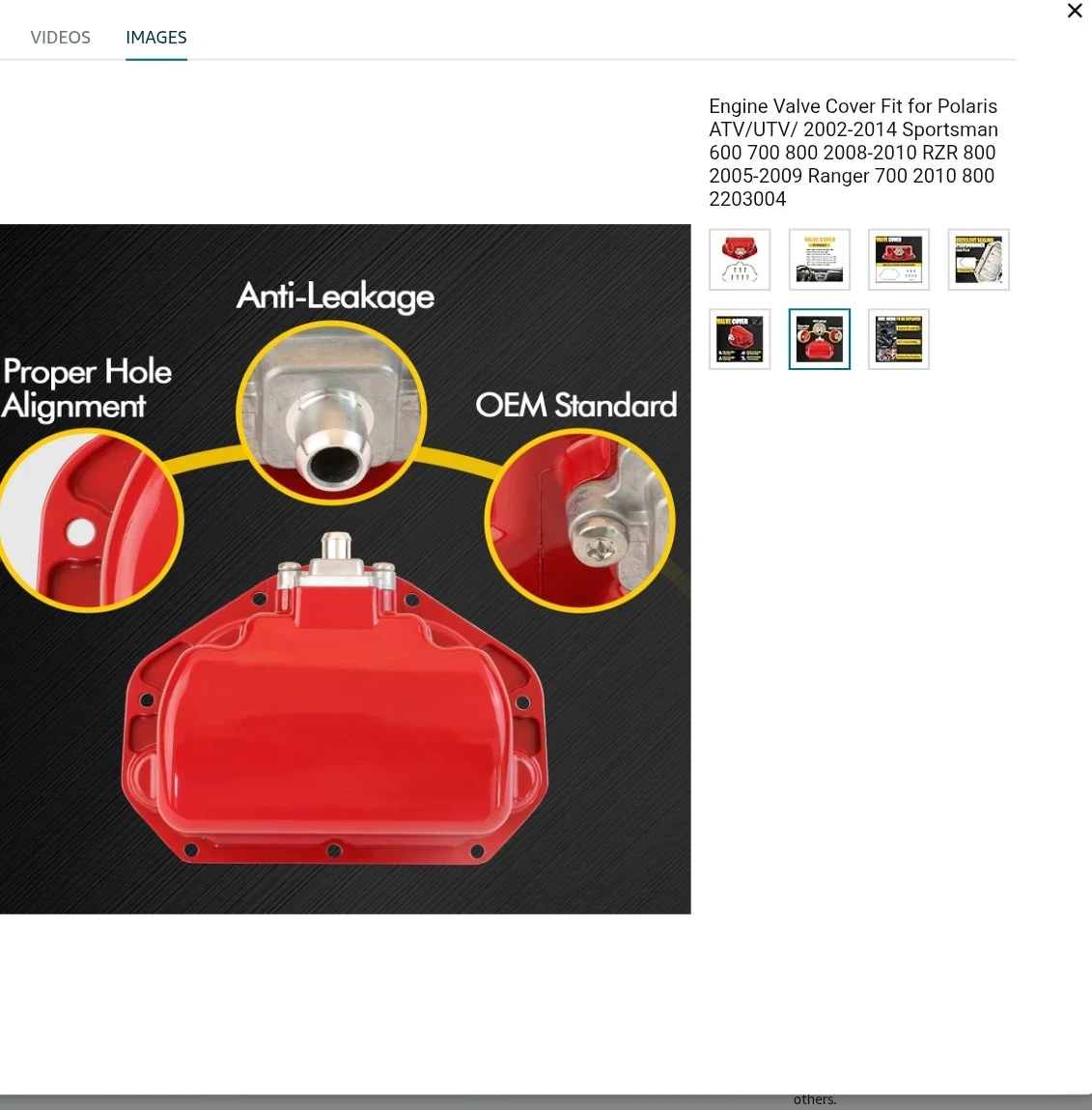 This is a red engine valve cover compatible with various Polaris models including sportsman, ranger, and RZR. It comes with a valve cover gasket and bolts for installation. It's a direct fit replacement part.