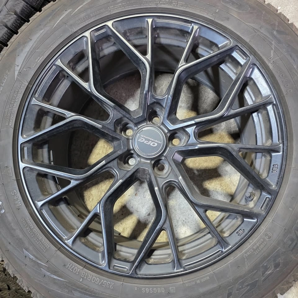 Selling a set of four 18-inch Toyo winter tires with OPE flow form alloy rims and TPMS sensors. Two tires have 95% tread remaining, and the other two have 90% tread. The tires have no patches or repairs. The rims are in excellent condition with no curb rash, bends, or cracks. Tire size is 235/60/18, and the rim bolt pattern is 5x108. These may fit select Ford, Land Rover, Lincoln, Volvo, and Jaguar models. Please verify fitment for your vehicle.