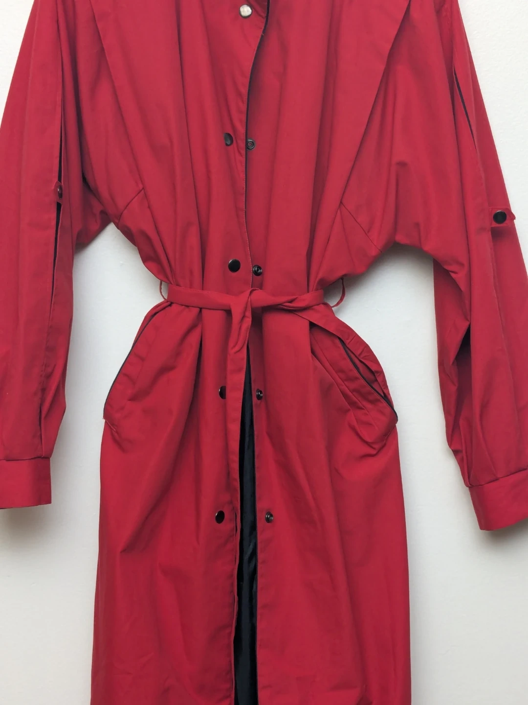15Selling a stylish Ada trench coat in a vibrant red colour. It's a size 15/16 and made with a shell of 65% polyester and 35% cotton, with a 100% nylon lining. Perfect for adding a pop of colour to your wardrobe!