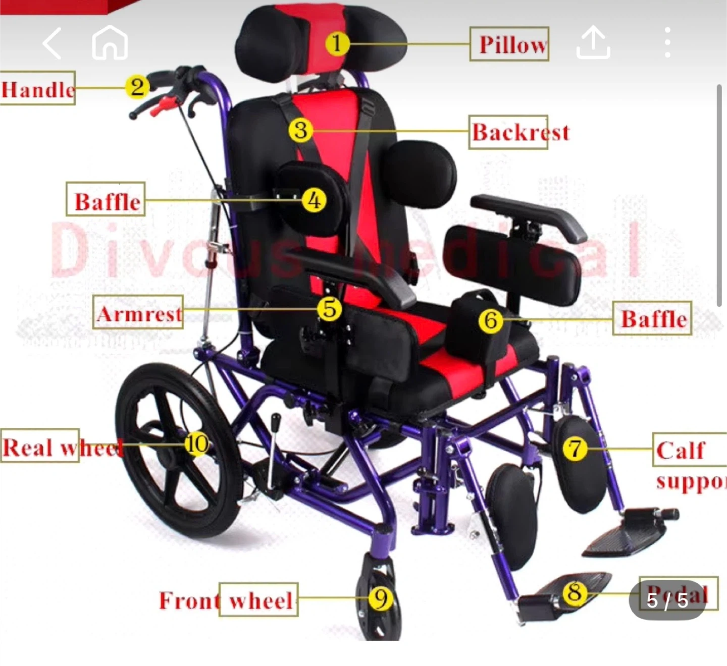 86Selling an adaptive positioning wheelchair in red and black. It features adjustable supports for comfort and stability. Great for anyone needing extra support!