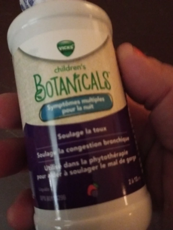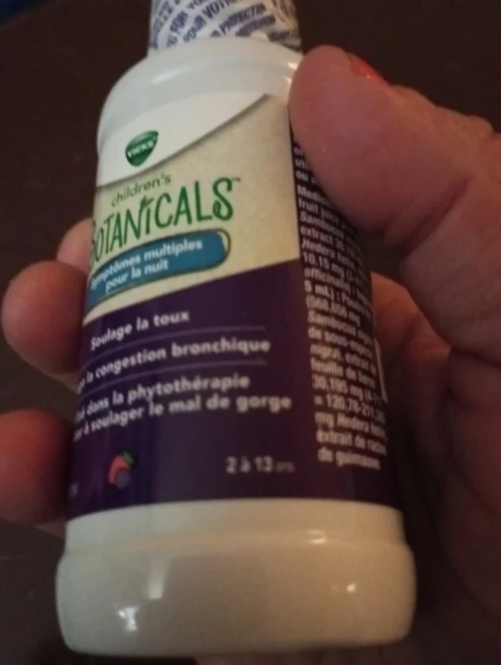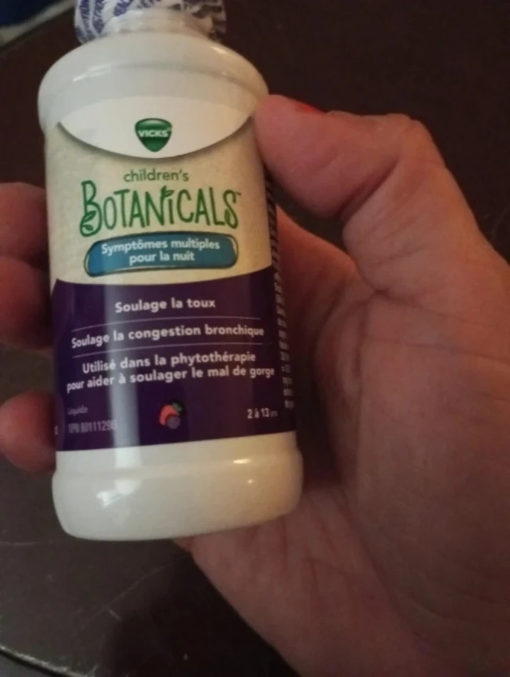 Vicks Children's Botanicals syrup for nighttime cough and bronchial congestion relief.