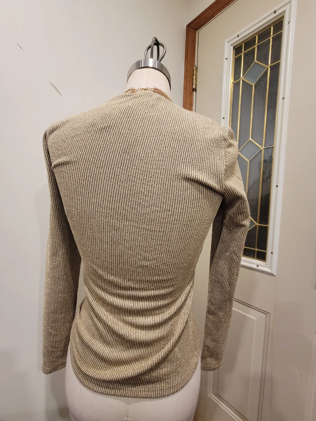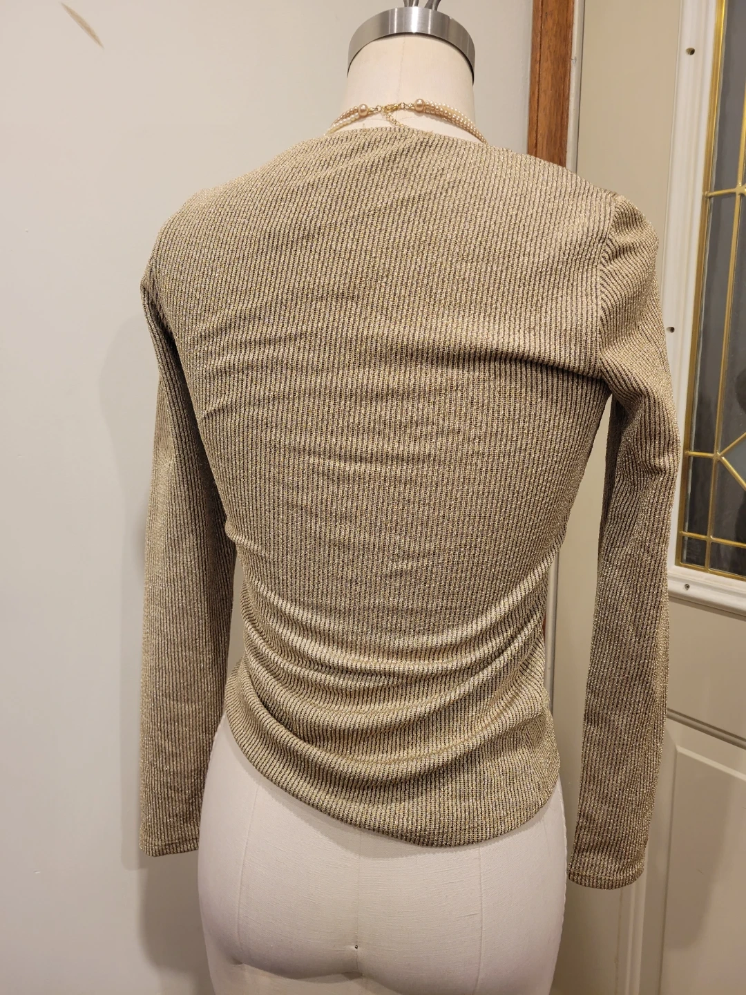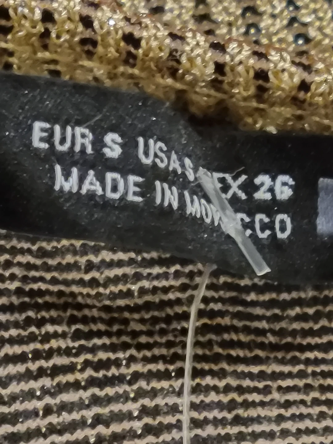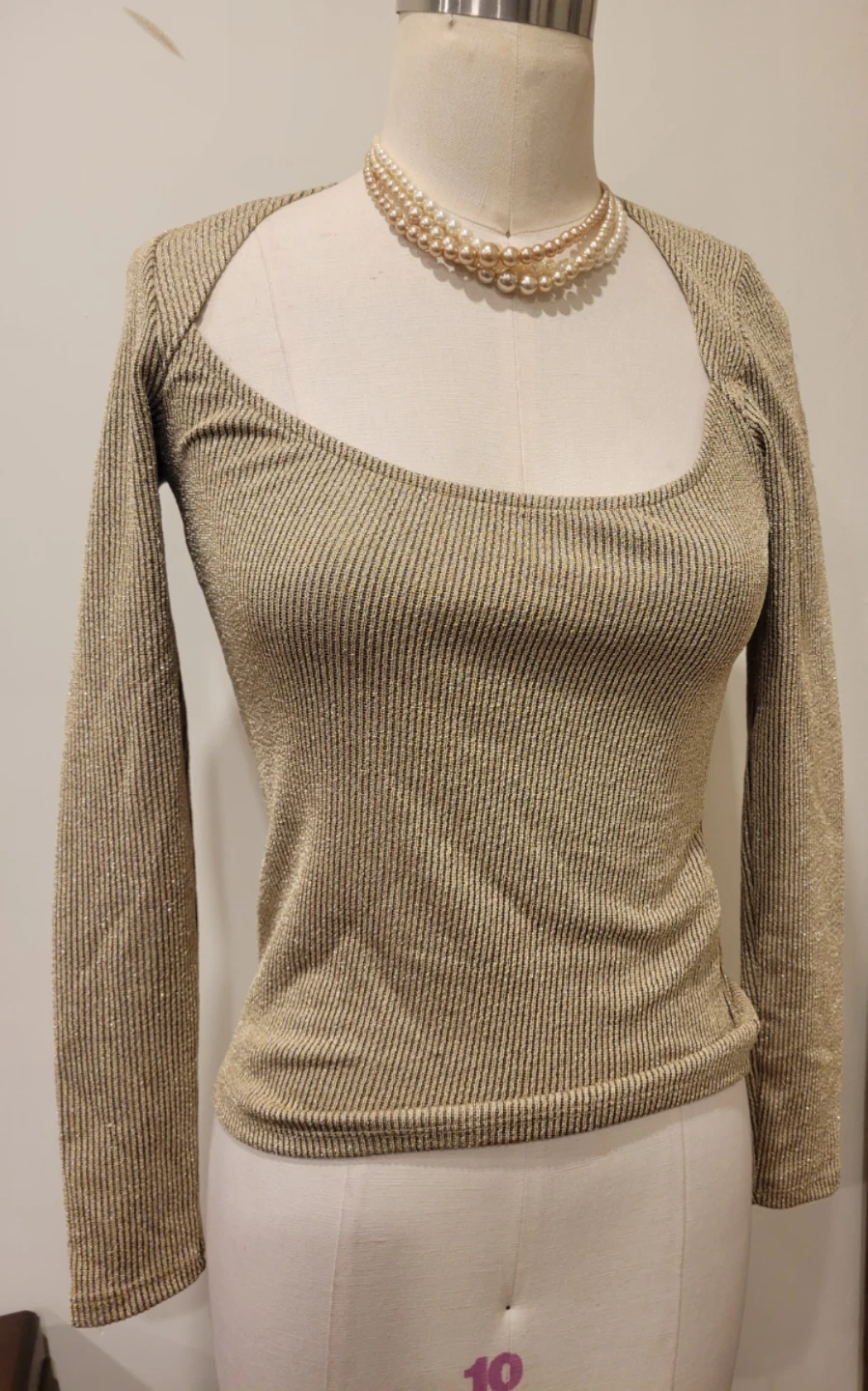 A sparkly gold knit long sleeve top. It features a ribbed texture and a square neckline. This top is made in Morocco. New with tag meetup location eglinton and dufferin area