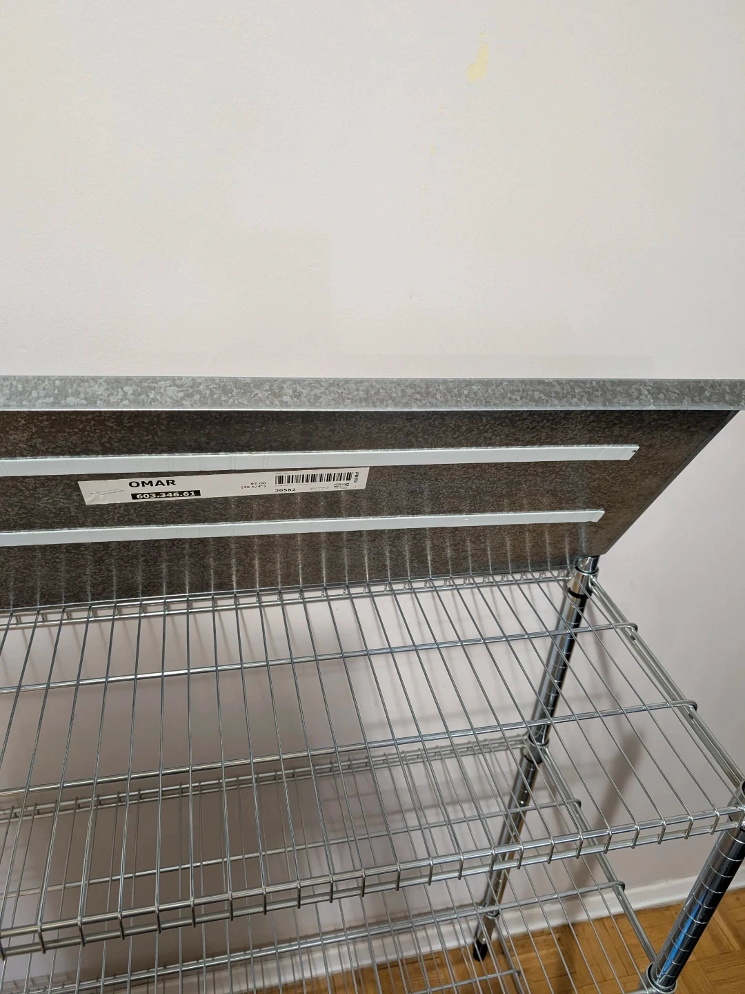 This is an IKEA OMAR shelving unit with a galvanized finish. It measures 92x50x94 cm. Includes a wire basket accessory. I have another shelving exactly the same like new.