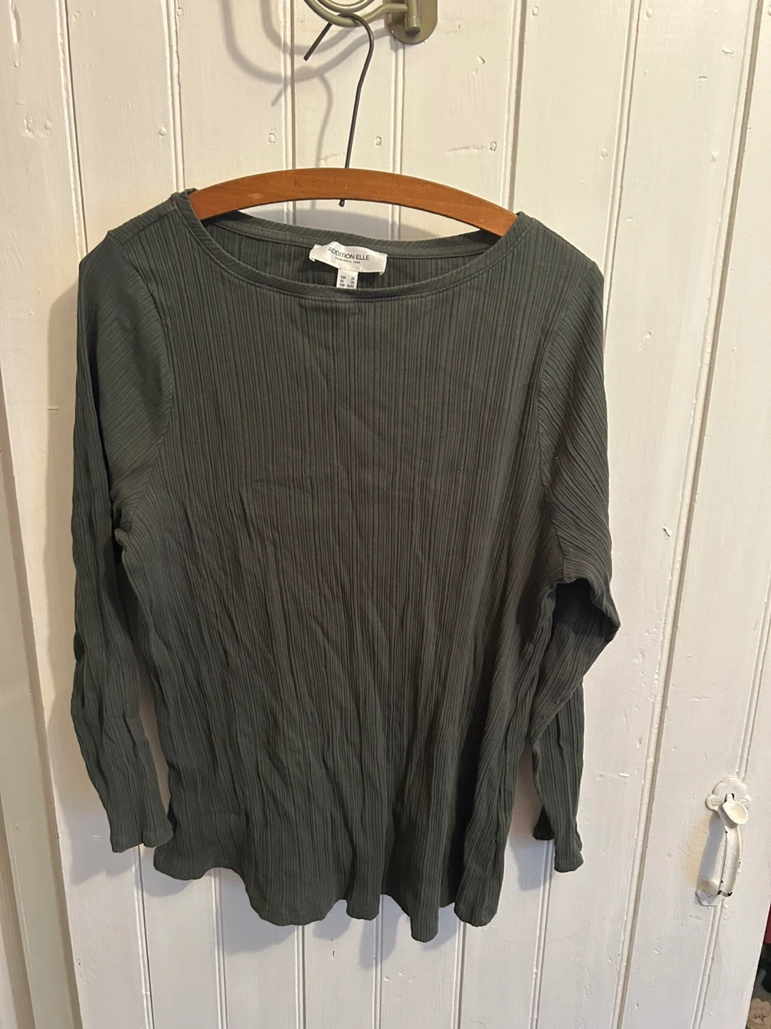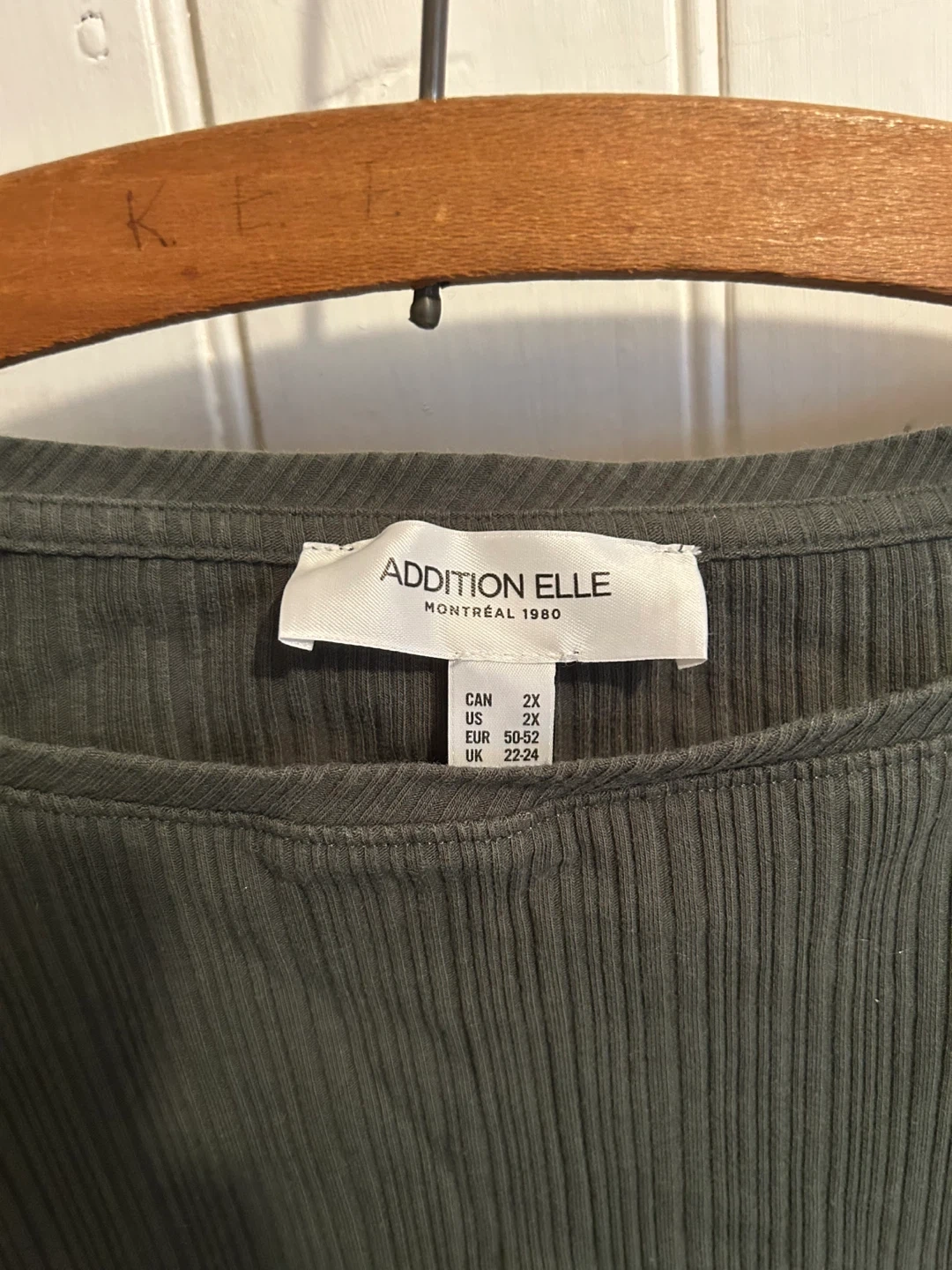 Addition Elle Brand. Long sleeve top. Green ribbed. Size 2x. Brand new condition $15 Pickup between kincardine & ripley or I can arrange delivery in port Elgin-Owen sound, walkerton-Durham, wingham-listowel-kw/cambridge, goderich-bayfield, Woodstock & Arthur-Orangeville-Newmarket-Lindsay-Peterborough AREAS.