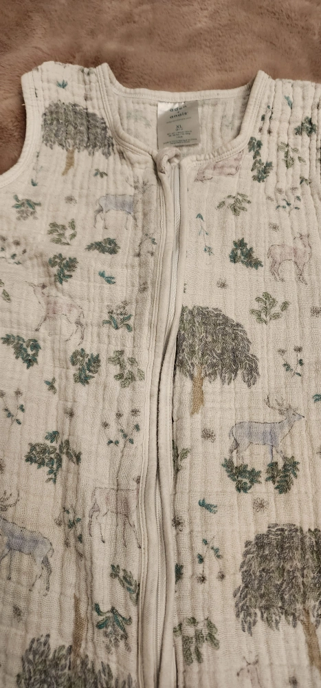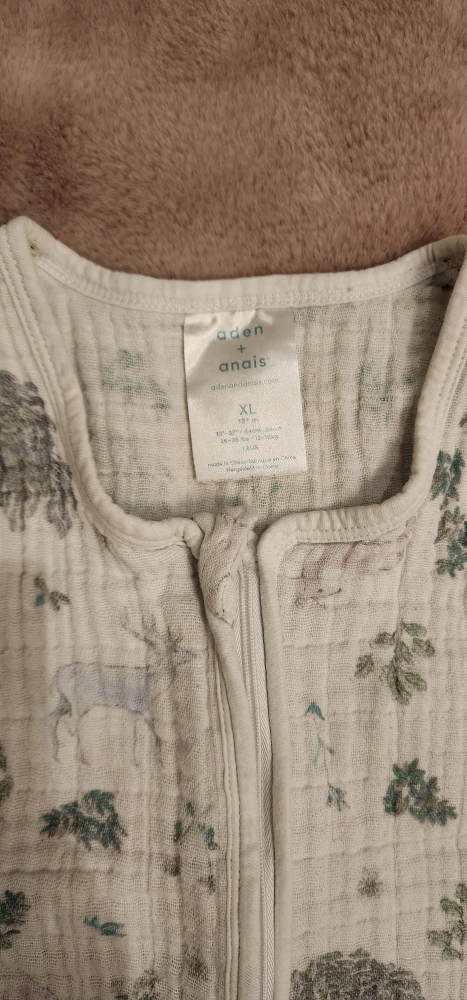 Size XL, 18m+, forest print. Muslin sleep sack. Perfect for transitioning from swaddles. Bottom corners opened as pictured for our Little's busy feet. Aden & Anais GOTS certified sleeping bag keeps your little one feeling comfy + secure when transitioning out of a swaddle. Made to wear over pj’s, organic baby sleep sacks eliminate the need for unsafe loose blankets in the crib. They’re crafted from lightweight breathable 100% organic cotton muslin for maximum airflow to reduce the risk of overheating. Aden & Anais sleeping bag is sized to be extra-long so your little has more room to wiggle and sleep comfortably. Plus, the convenient inverted bottom zipper makes nighttime or naptime diaper changes a breeze. Features Aden & Anais organic baby sleep sacks are consciously made with quality + sustainability in mind, and manufactured according to the strictest ecological, social, and processing standards so you can surround your babe in fabric free of toxins. 1.0 TOG. Wear over pajamas; can also be layered with warmer sleepwear in cooler temperatures. ☑️ If the posting is up then the item is still available. ☑️ Price negotiable if purchasing multiple items. ☑️ Cash only. ☑️ Can meet at Osgoode subway station (Queen & University), or Gerrard Square Mall. No delivery.