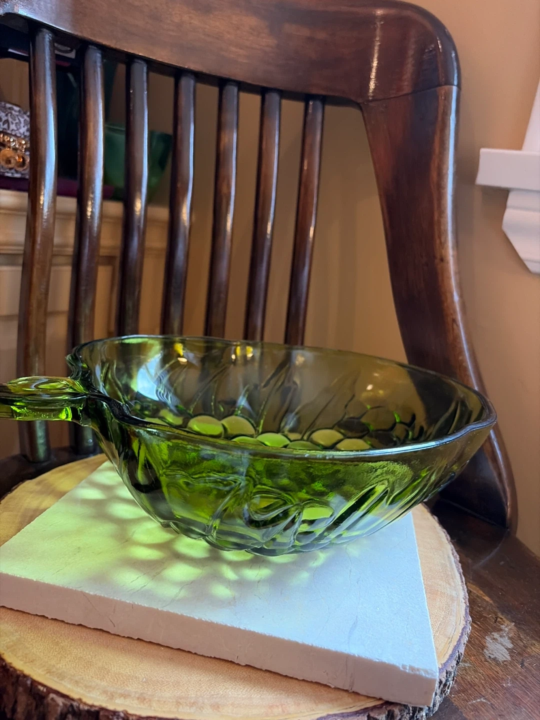 Vintage Avocado Green Indiana Glass Grape Salad Bowl