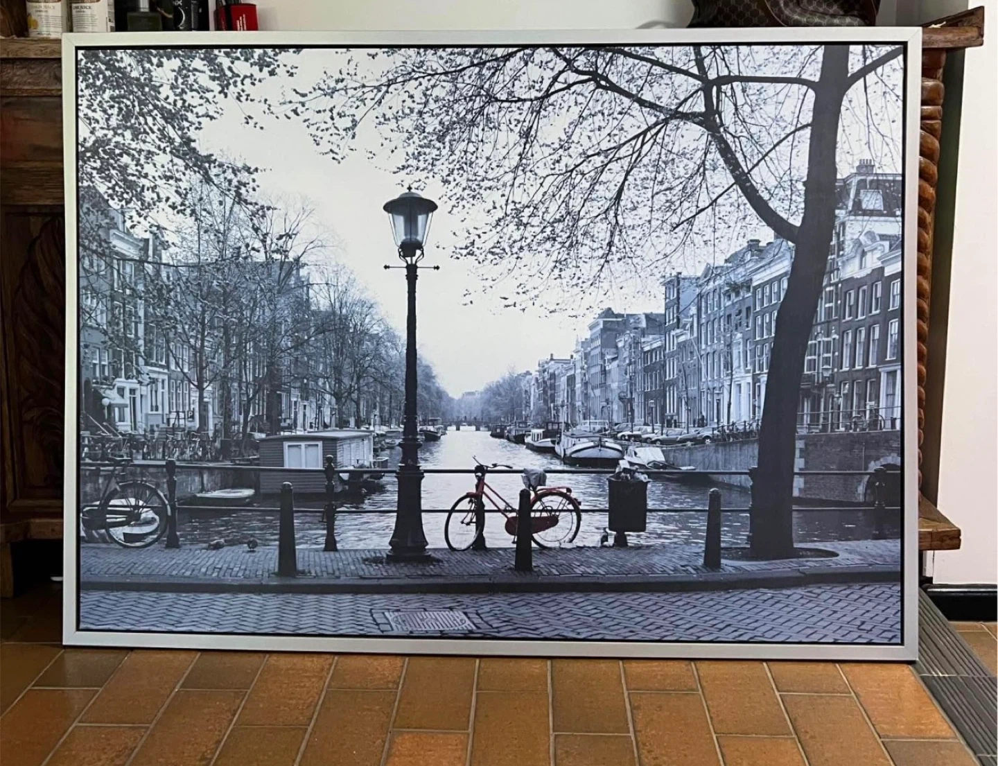 IKEA VISHULT Large Black and White Amsterdam Canal Art Print