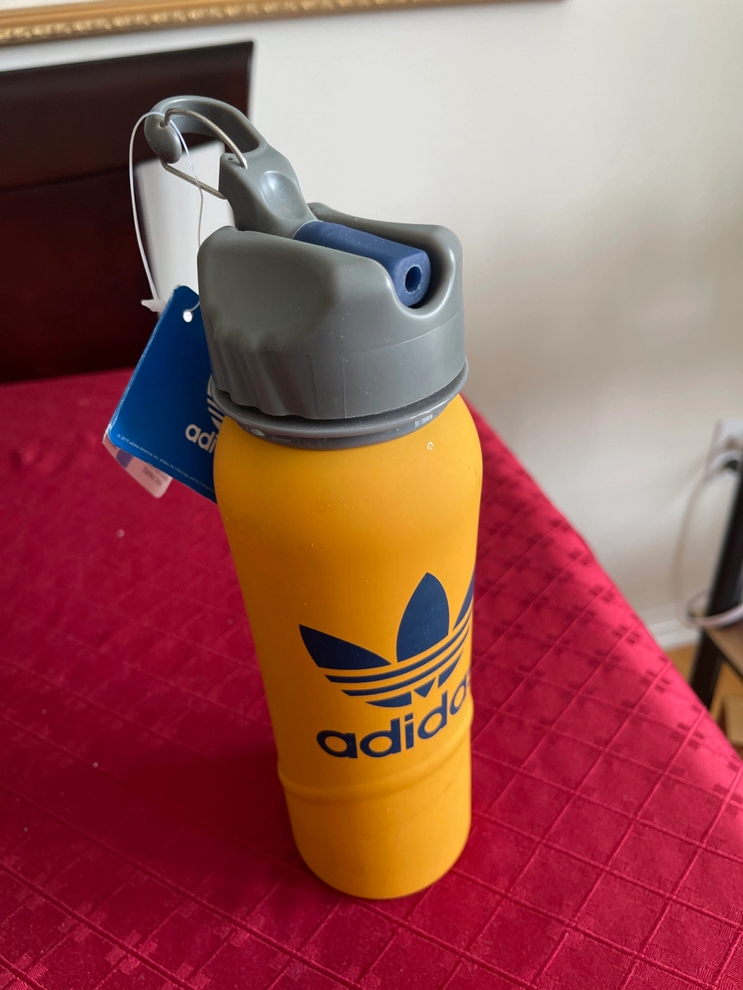 37Adidas branded water bottle. 700ml capacity. Features a flip straw and carrying loop. Made from 18/8 food-grade stainless steel. BPA-free. Dishwasher safe (top rack).
