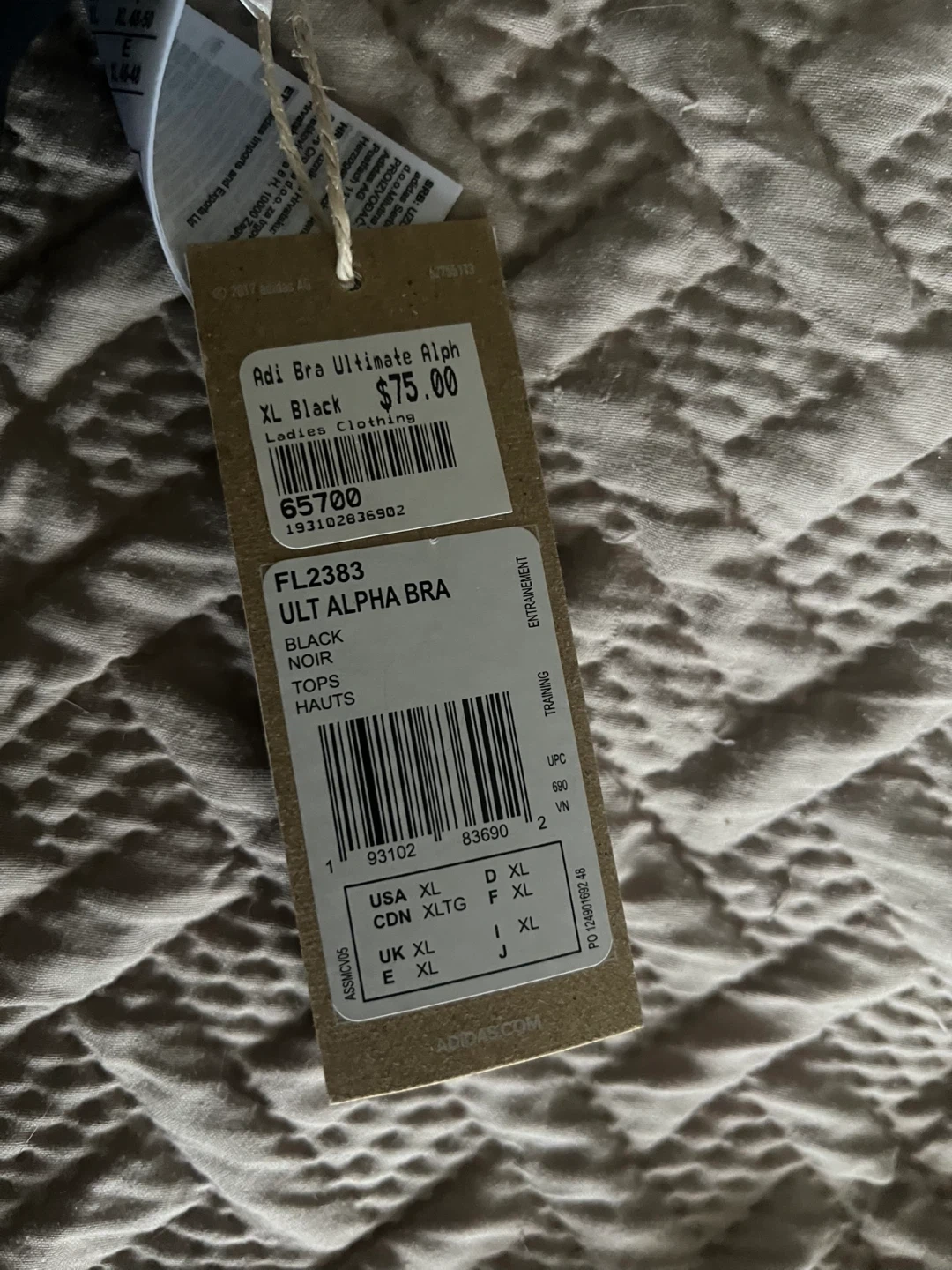 10Selling an Adidas Adi Bra Ultimate Alph in size XL (fits more like a large) and black colour. Originally bought for $75. It's in great condition, never worn. Tags still on.