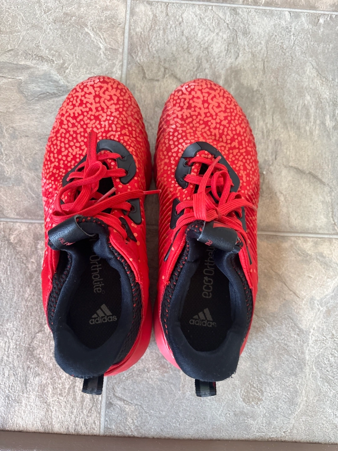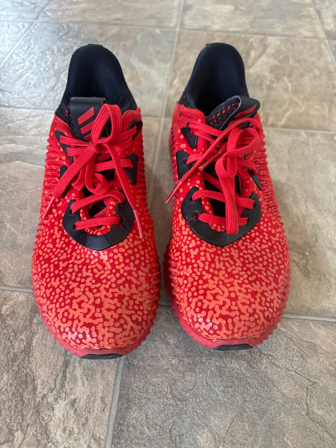 Selling a pair of red Adidas Alpha Bounce sneakers! They are in good condition with a unique red patterned design. Perfect for running or casual wear!