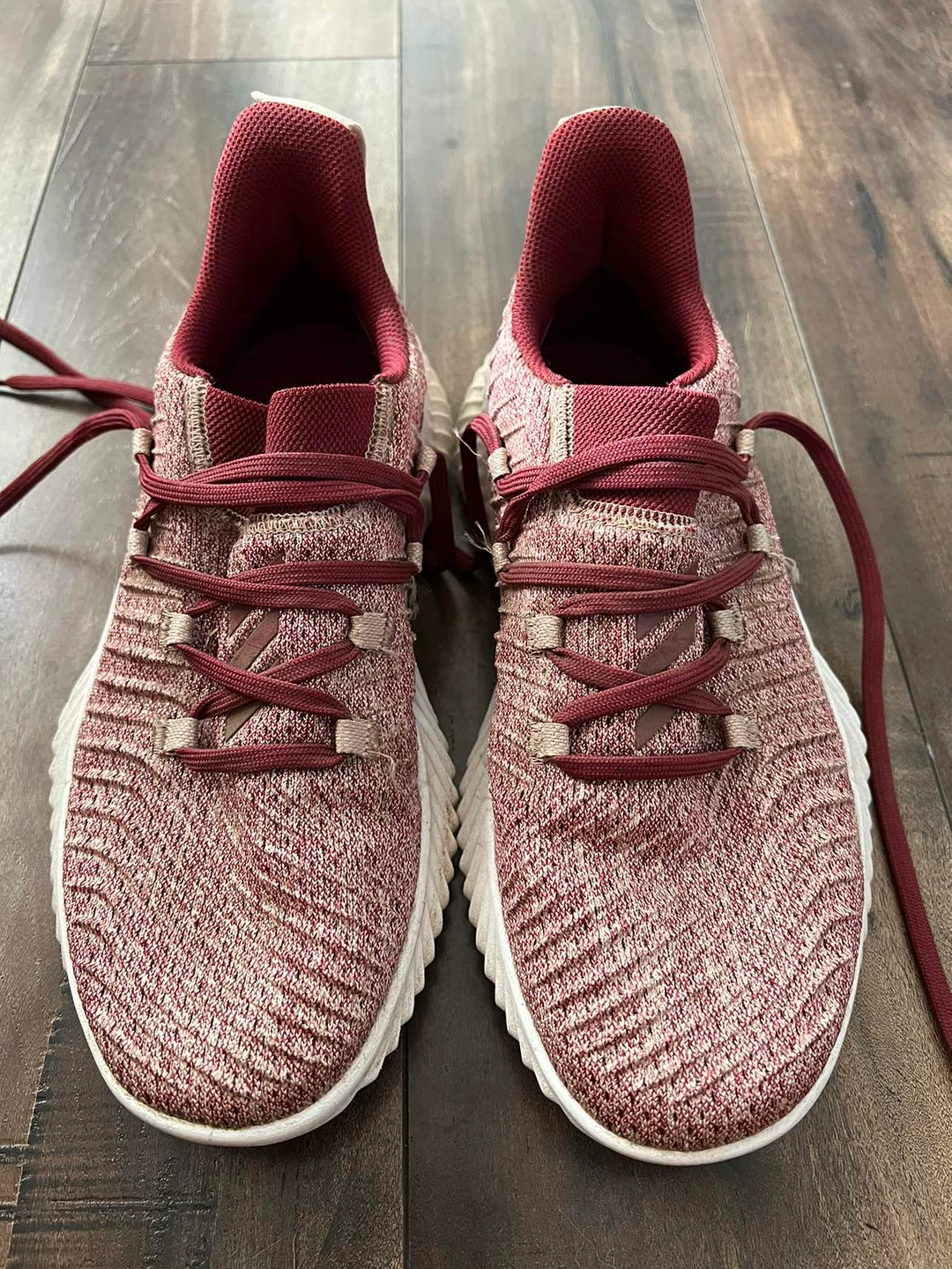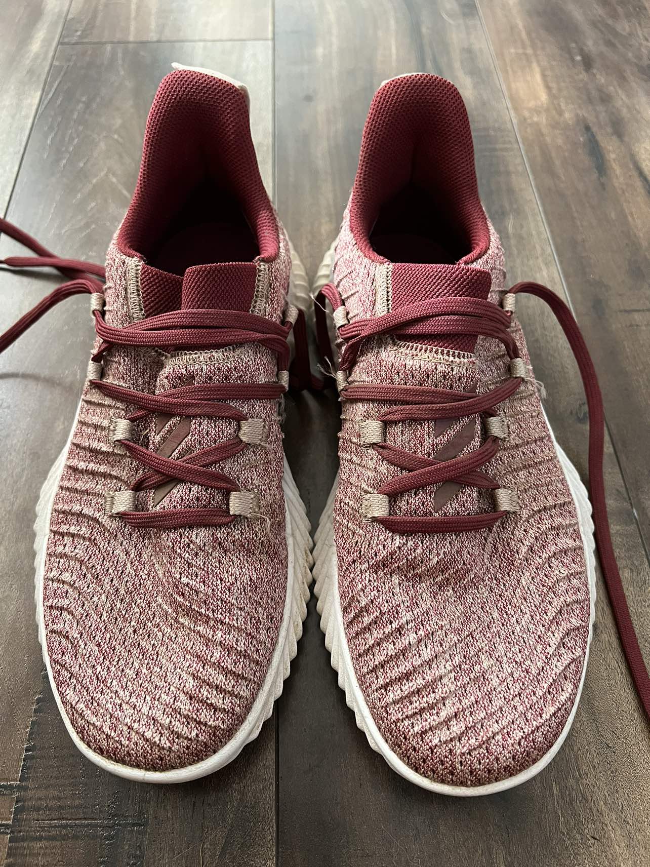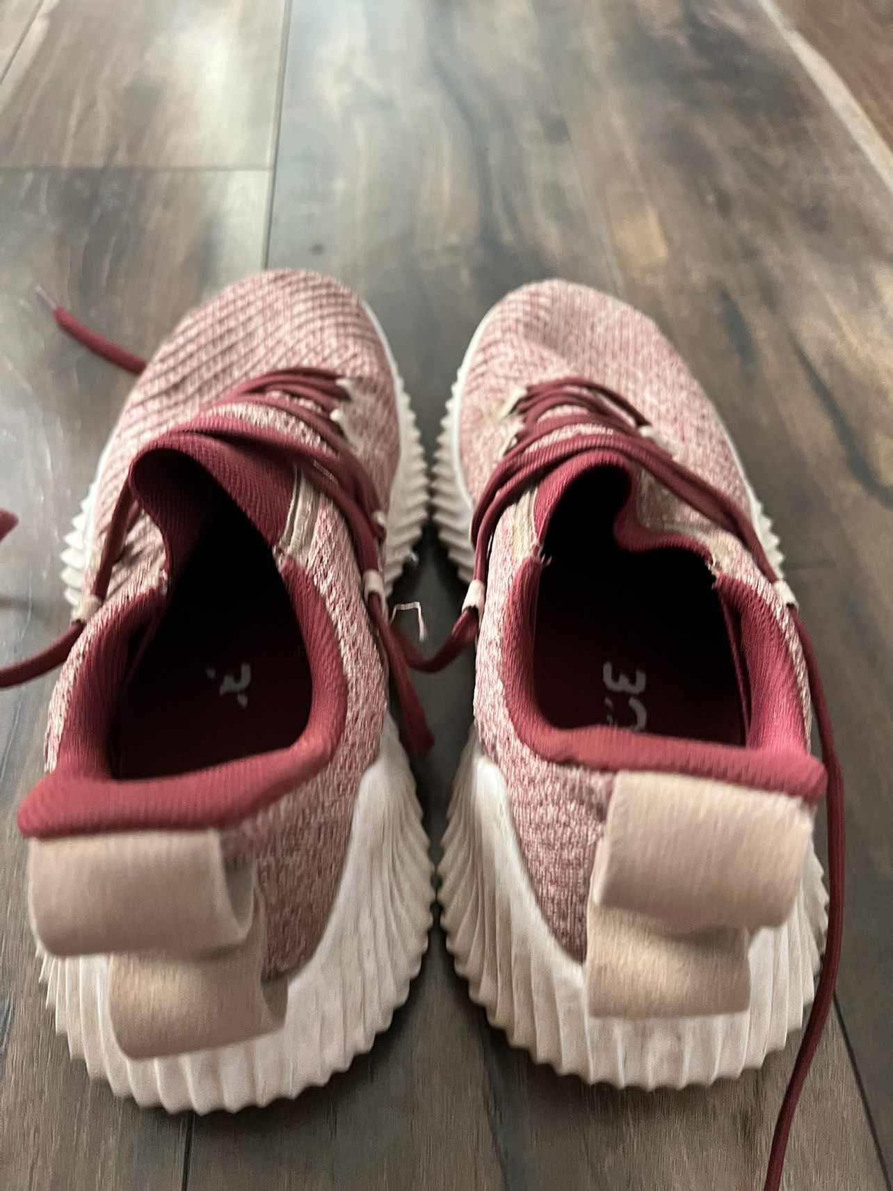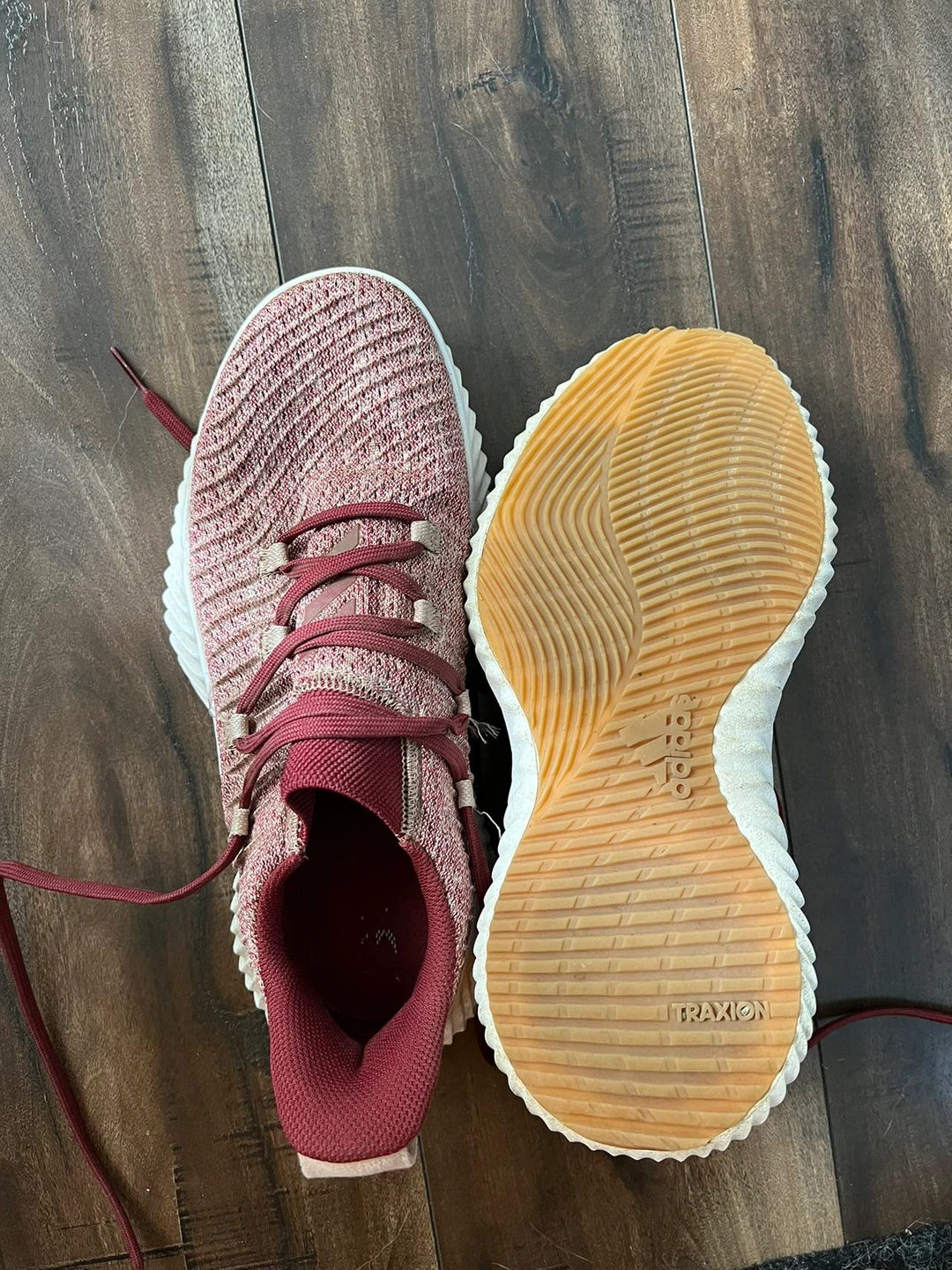 35adidas alphabounce trainer in burgundy, size US8 women’s Used, in good condition - some loose threads where the shoelaces are (see photos). Bottom of shoes in great condition.