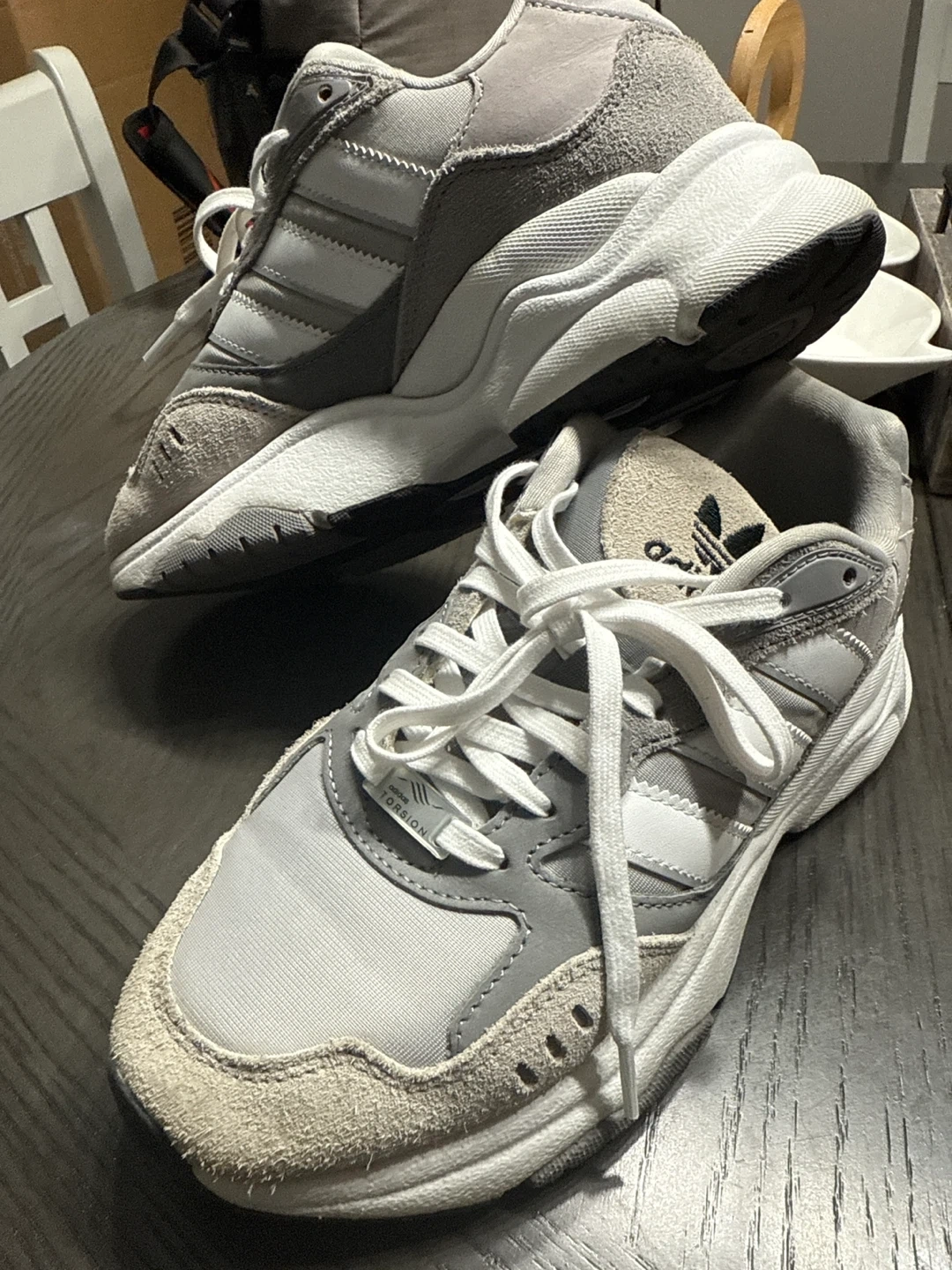17Selling a pair of Adidas Astir sneakers in a stylish grey and white colourway! These shoes are in great condition and ready for a new home. They feature the classic Adidas three-stripe design and a comfortable fit. Perfect for everyday wear or hitting the gym!