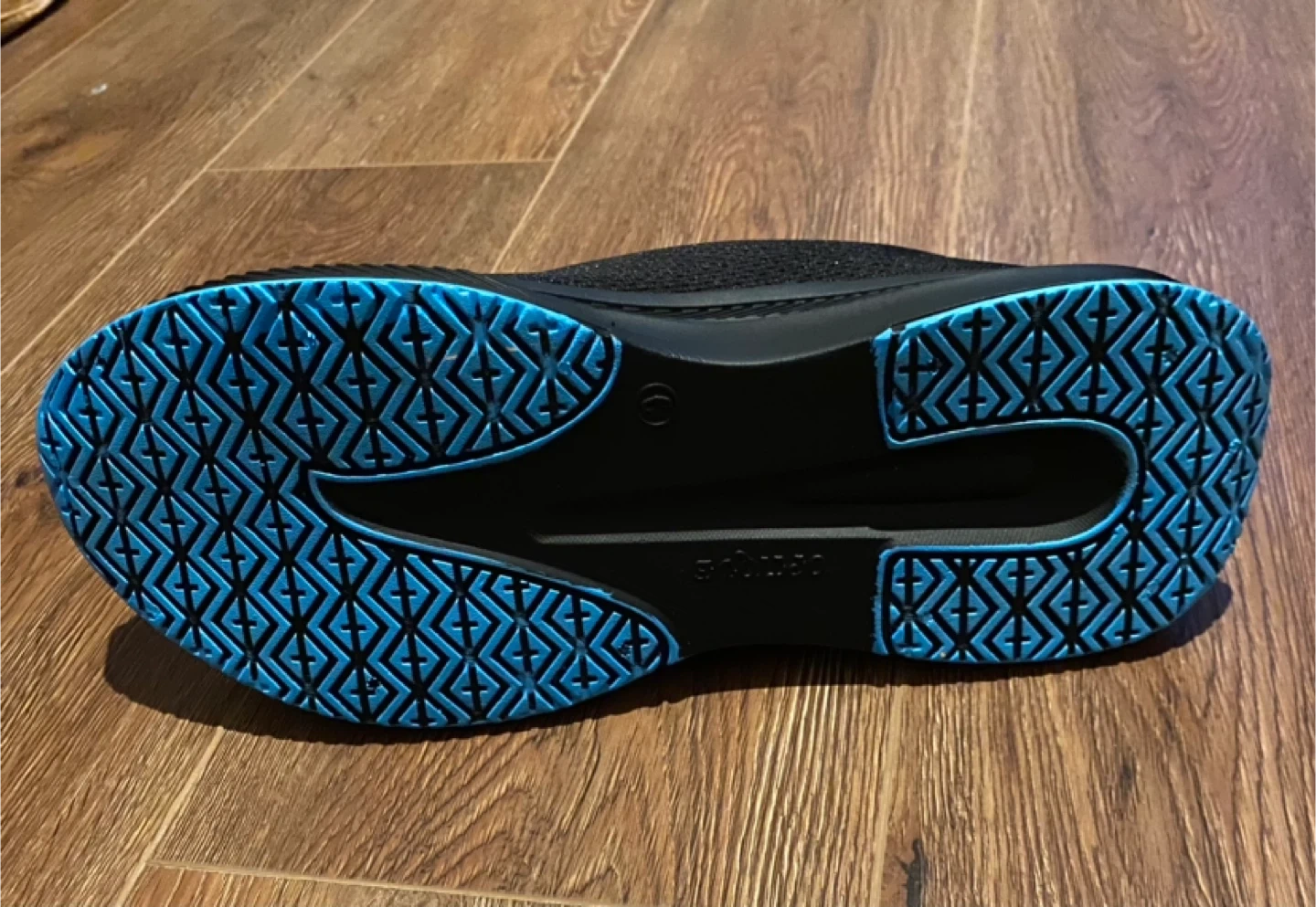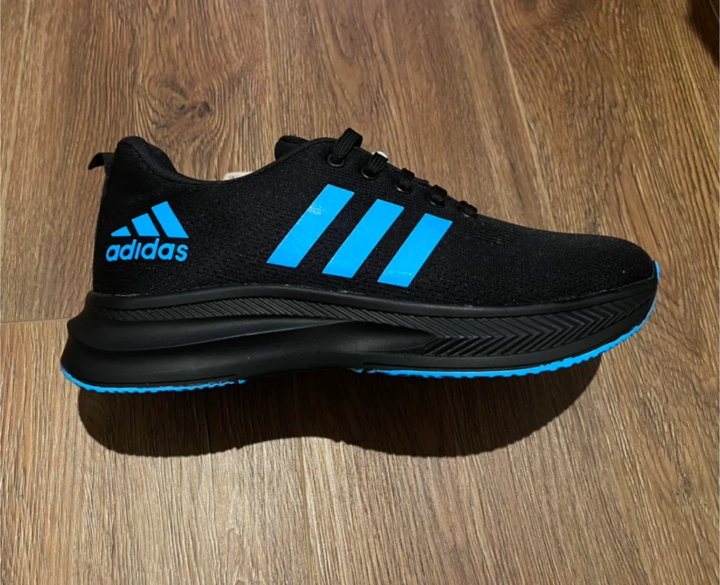 5Selling a pair of Adidas running shoes in black with blue accents! They look great and are ready for your next run, walk, or just kicking around town
