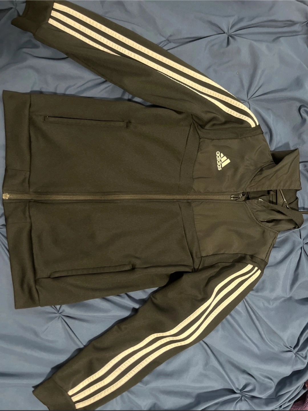 Selling a black Adidas jacket in great condition. It's a size M, suitable for ages 11-12 years (UK 11-12Y, US M). Perfect for keeping your kiddo warm and stylish!