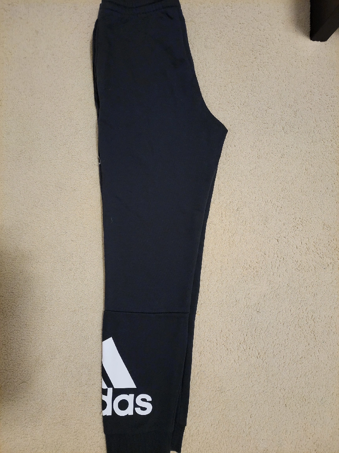 15Selling a pair of Adidas jogger pants in black. They are size A/M. The Adidas logo is prominently displayed on the leg. Perfect for workouts or lounging around!