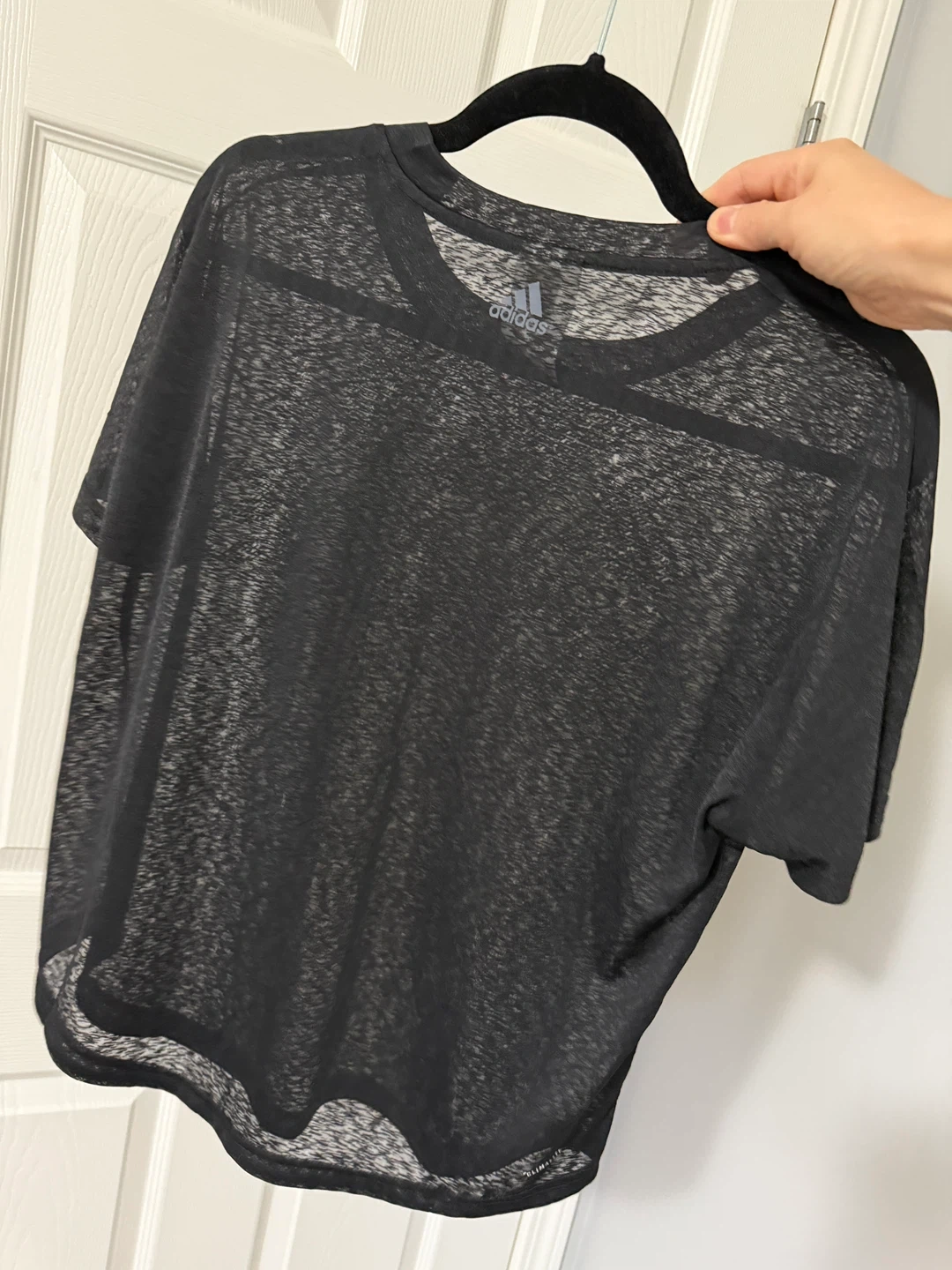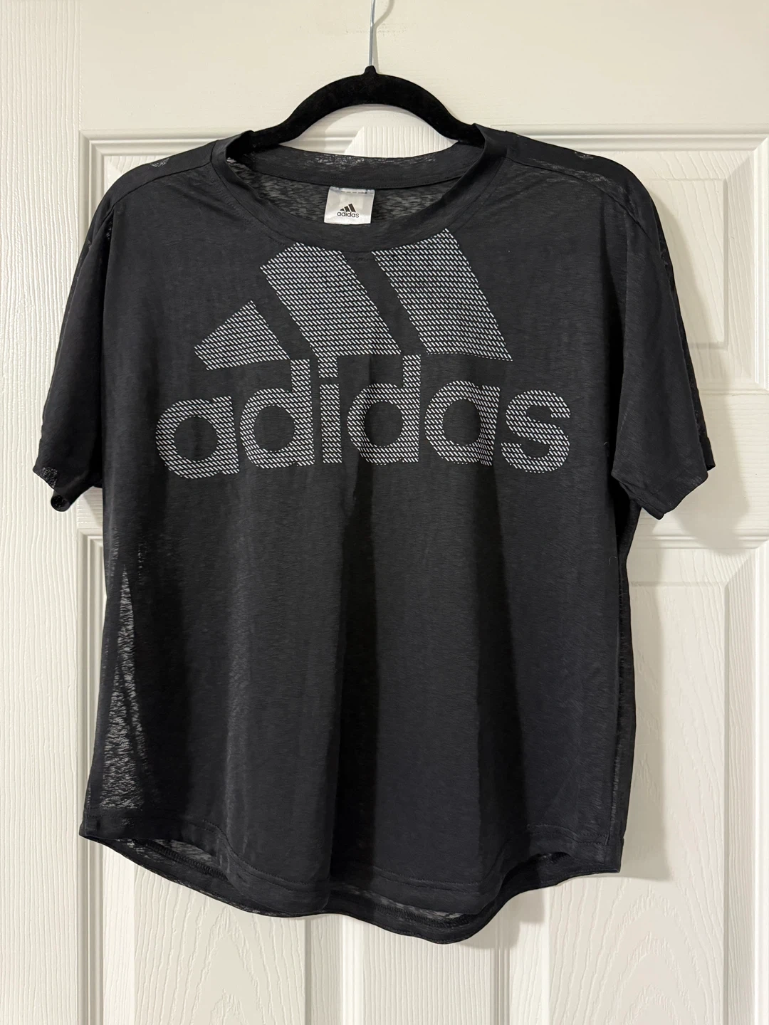 Selling a black Adidas t-shirt in size small. It's in great condition and features the classic Adidas logo. Perfect for workouts or casual wear!