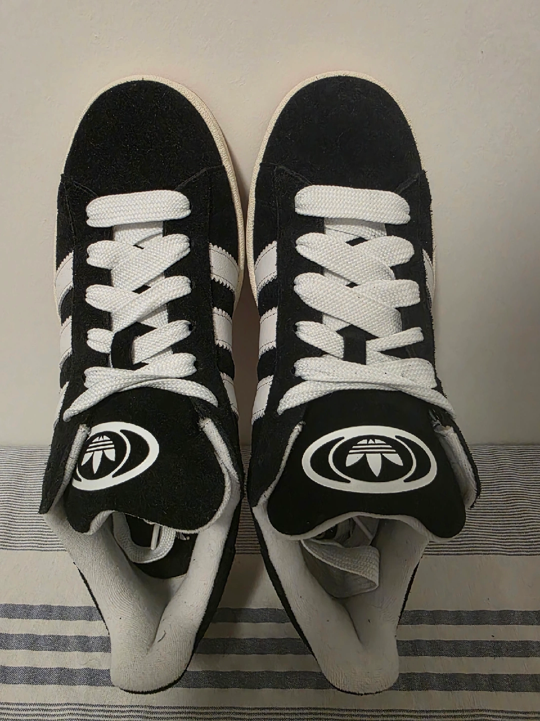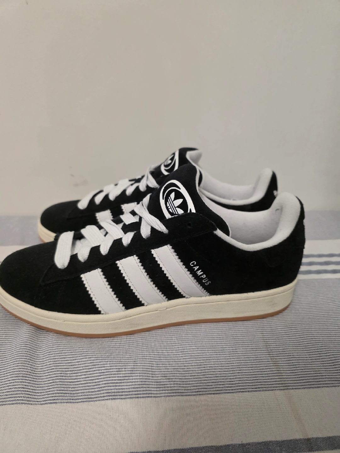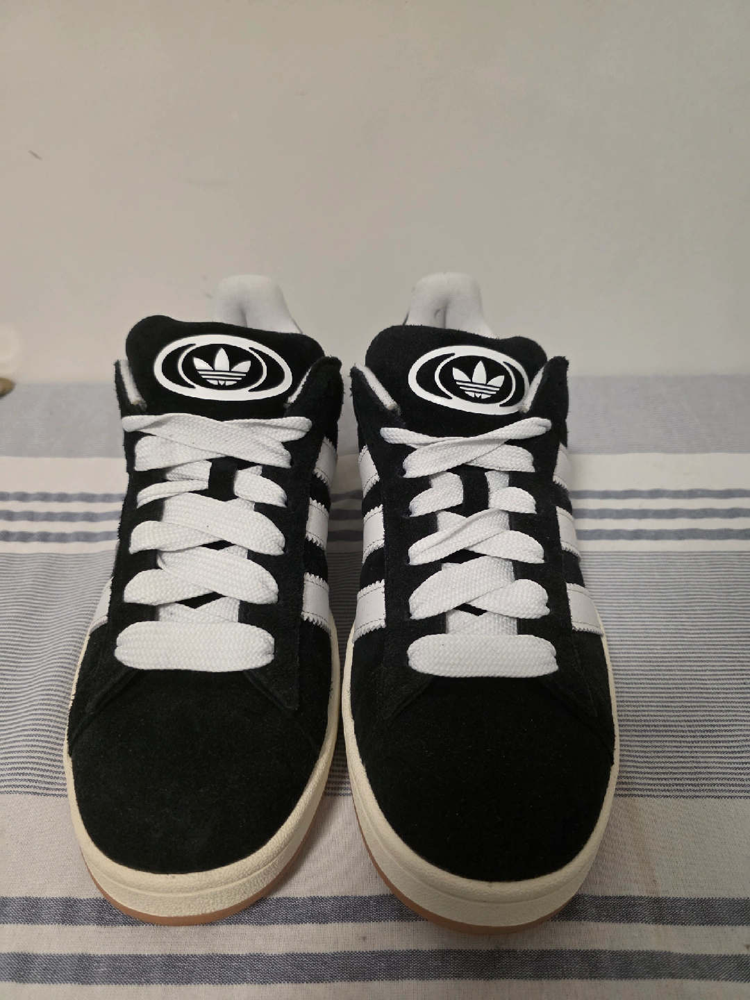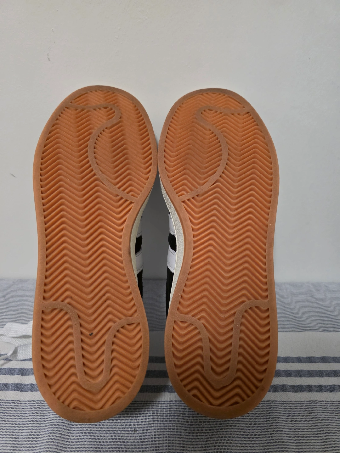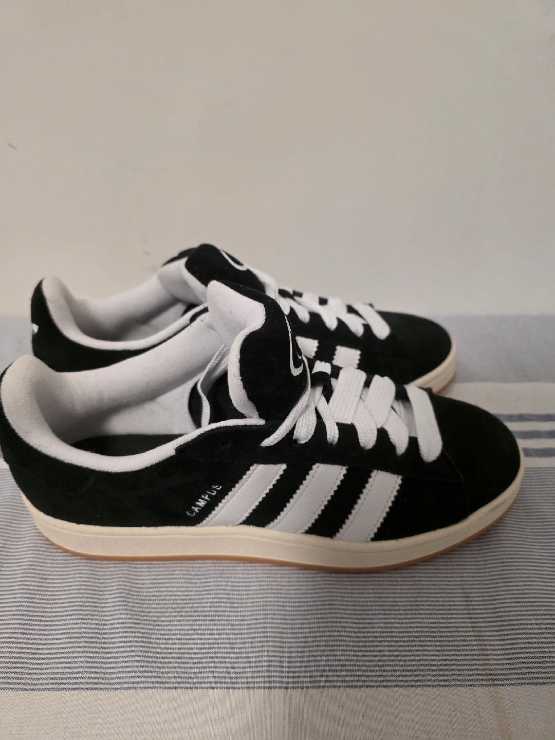 Selling a pair of Adidas Campus 00s sneakers! They're in a classic black and white colourway and are in great condition. I've purchased without trying, and accidentally removed the label so I was unable to exchange it. I got it more than a year ago and walked less than 1km with it, so it's brand new. Selling because it's too big for me. Perfect for everyday wear!