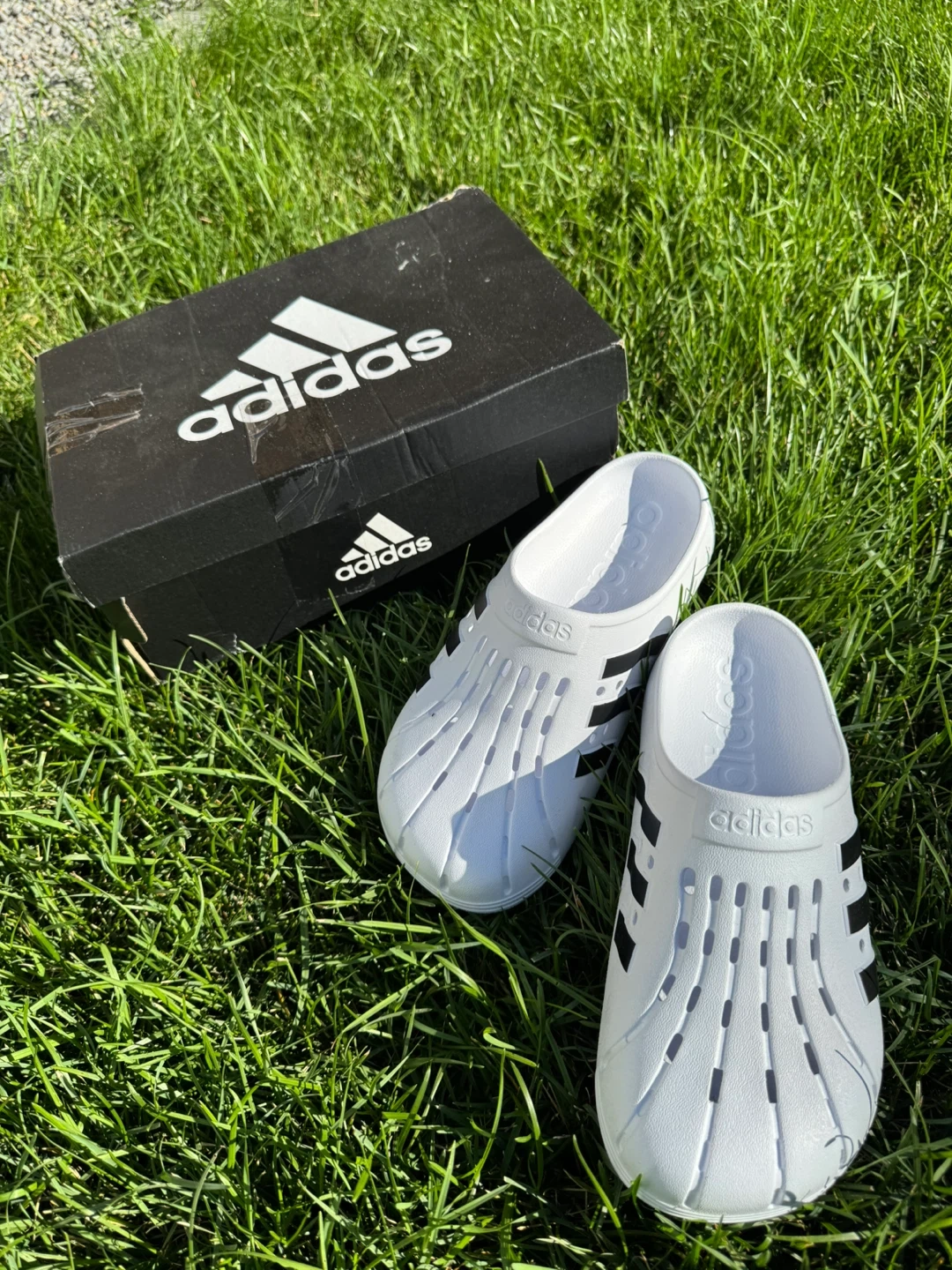 15BNIB - Adidas Clog Slides Size Mens9/Womens10 (Box size is wrong) Easy on /off pool deck to the shower to the couch, these slides are made for the work-hard-rest-hard lifestyle. Lightweight cushioning keeps your feet cradled in all-day comfort. Pick up in Brooklin or delivery if near by. If further away delivery possible with small fee. For sale on Amazon $70+tax https://www.amazon.ca/adidas-Unisex-Adult-Adilette-white-black/dp/B087CDRJ3F/ref=asc_df_B087CDRJ3F?mcid=851f01e808e330febc4562981ff7cbf6&tag=googlemobshop-20&linkCode=df0&hvadid=706727462787&hvpos=&hvnetw=g&hvrand=308611818484081959&hvpone=&hvptwo=&hvqmt=&hvdev=m&hvdvcmdl=&hvlocint=&hvlocphy=1002597&hvtargid=pla-984884273662&psc=1&hvocijid=308611818484081959-B087CDRJ3F-&hvexpln=0&gad_source=1