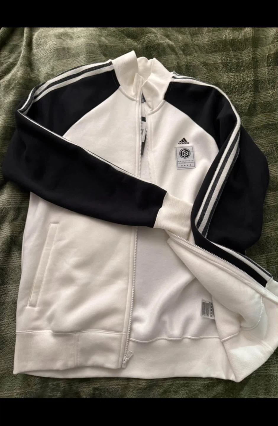 0Selling an Adidas DFB Icons Top in white and black, size medium. Perfect for sports or casual wear.