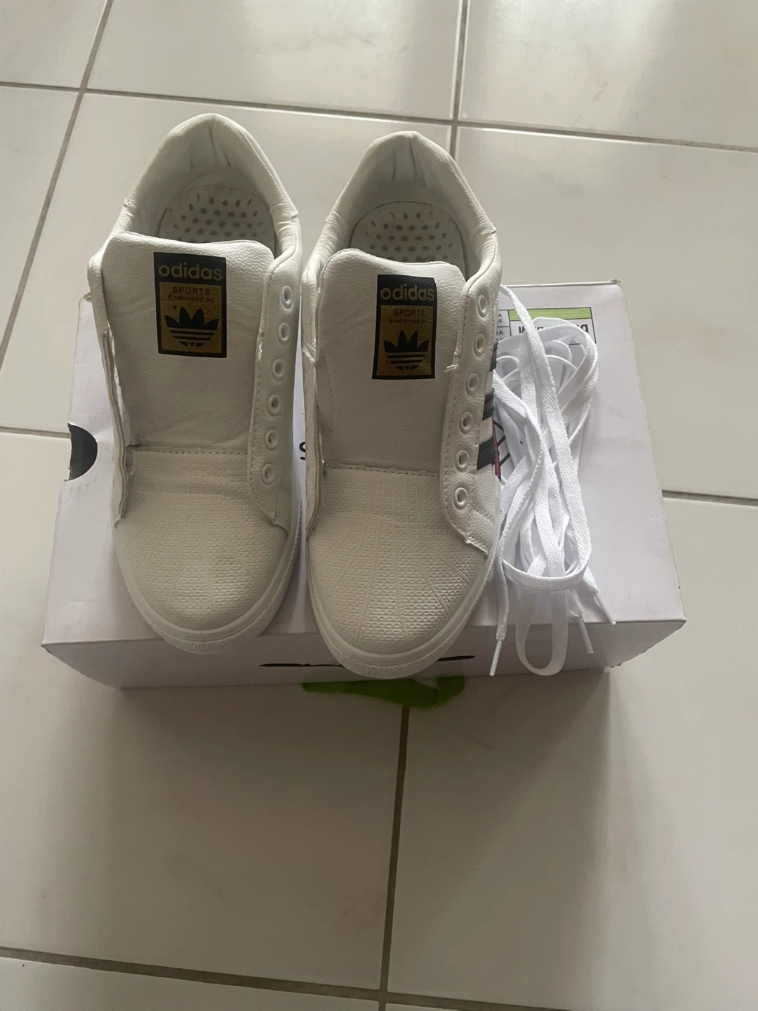 10Selling a pair of white Adidas Fashion sneakers. laces are included. Great for everyday wear! size 8