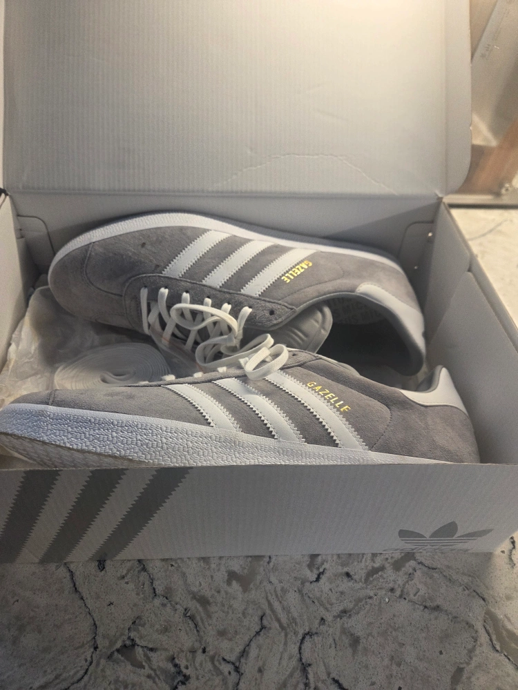 65Selling a pair of Adidas Gazelle shoes in grey suede. These are a size US 12 and come with the original box. Great for everyday wear!