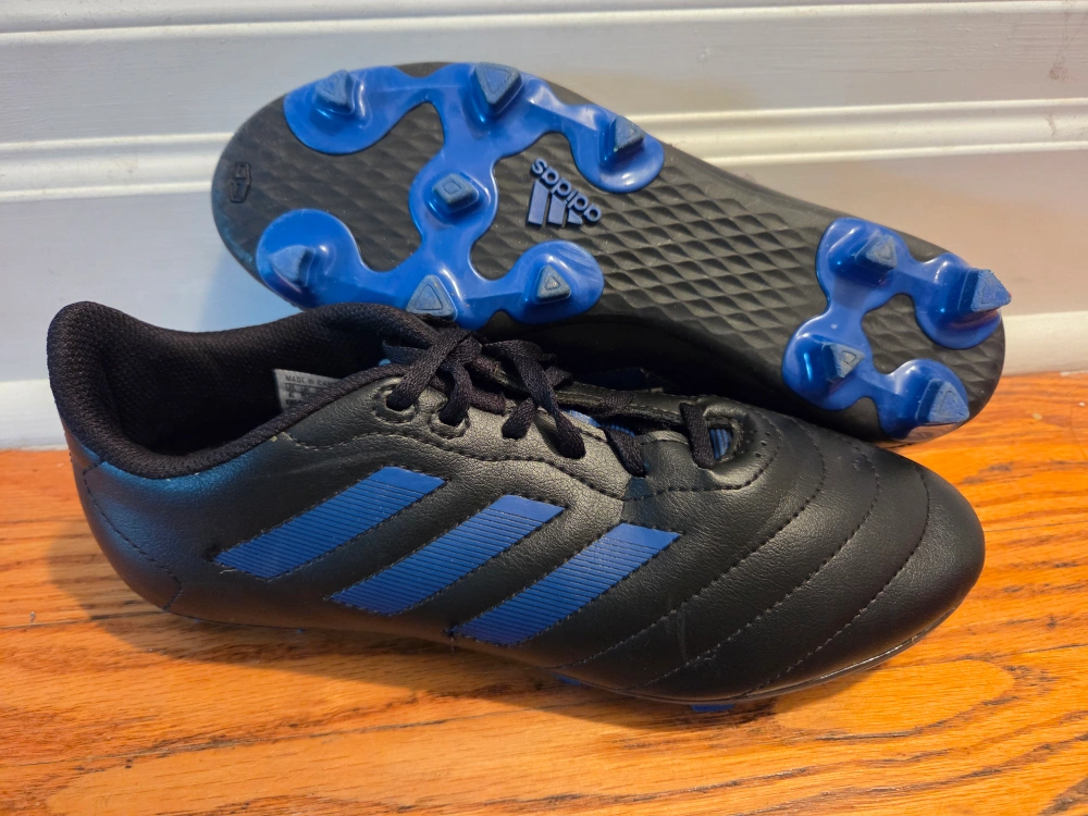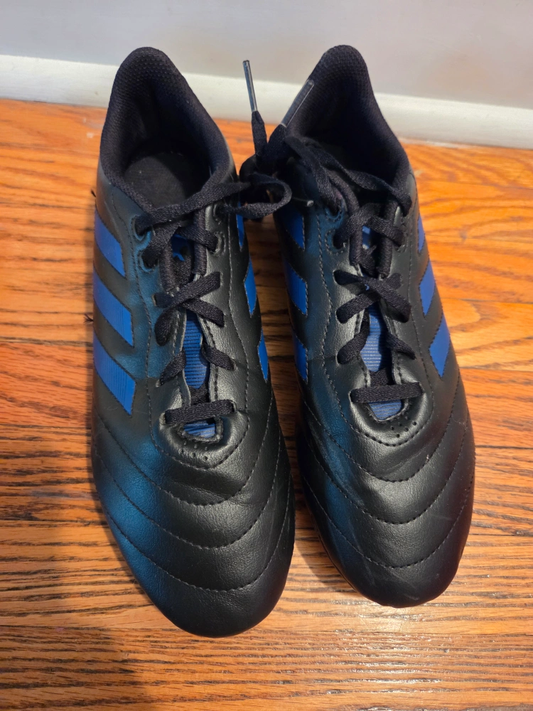 10Selling a pair of Adidas Goletto VIII Turf soccer shoes. They are black with blue stripes. The size is 6 in US/Canada sizing. These are great for playing soccer on turf!
