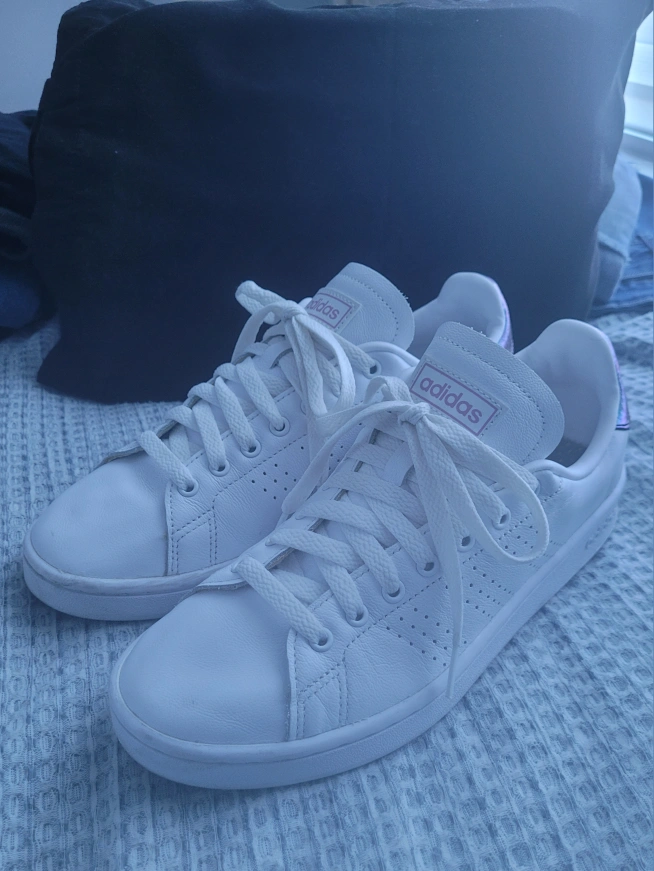 Selling a pair of Adidas Grand Court shoes in white! They're in great condition and super comfy thanks to the cloudfoam comfort insole. The size is US 8.5 / UK 7 / FR 40 2/3 / JP 255. Perfect for everyday wear! Gently used