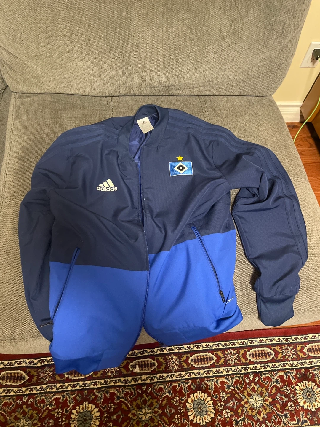 15Selling an Adidas Hamburg jacket in size M. It's a stylish jacket with a unique design. The jacket features a two-tone colour scheme with the Adidas logo prominently displayed. Perfect for casual wear or sports activities