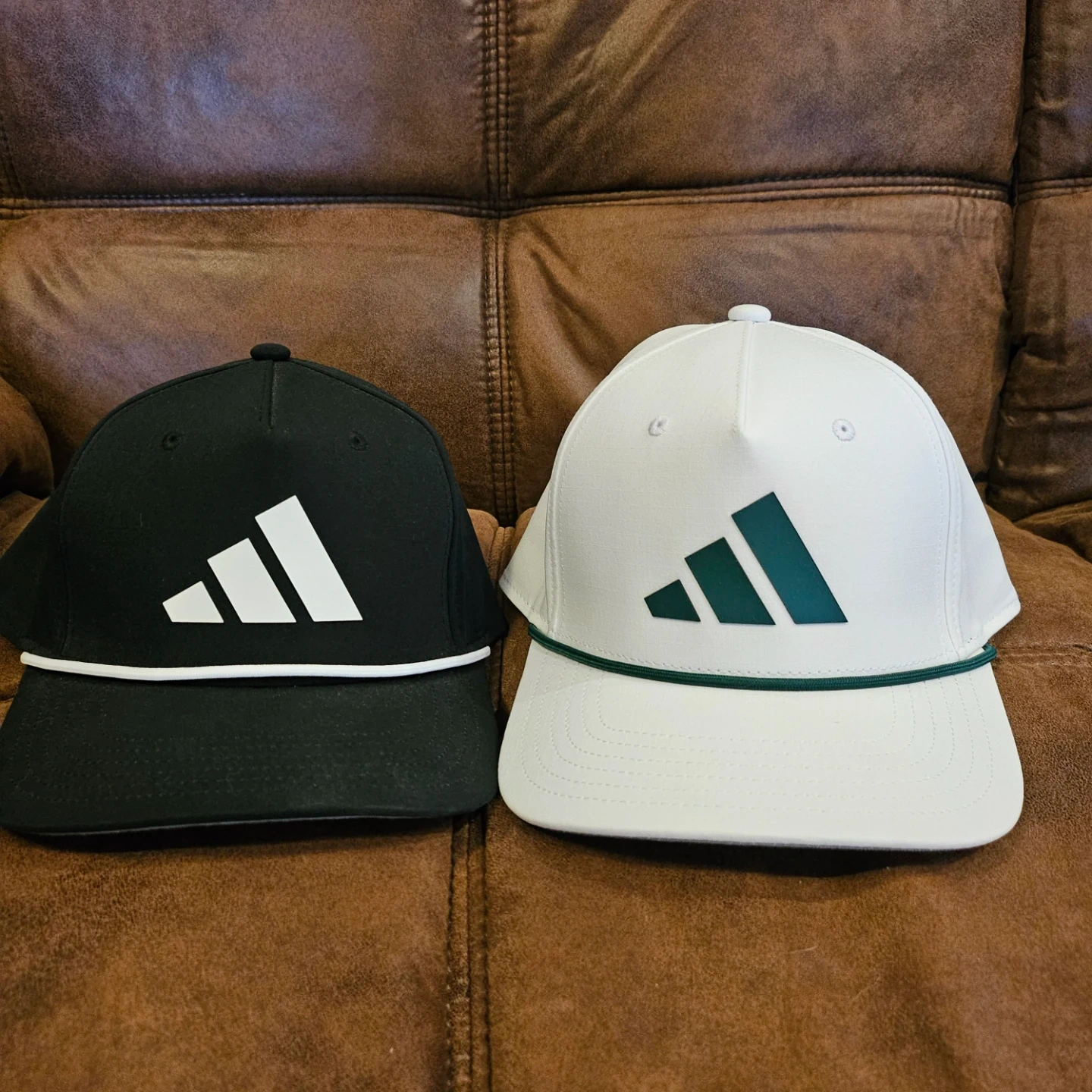 60Selling these Adidas hats! One is black with a white logo, and the other is white with a green logo. Both are in great condition and ready for a new home!