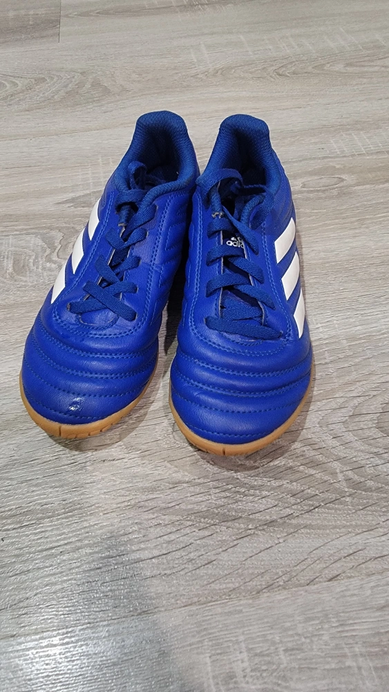 Selling a pair of Adidas indoor soccer shoes in blue and white! They are in great condition and ready for the next game. The size is US 1