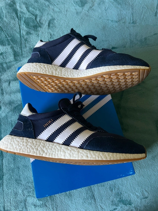 Selling a pair of gently used Adidas Iniki Runner shoes in men's size 9.5. These stylish sneakers feature a navy blue and white colourway with a gum sole. They have been worn just a couple of times but are still in great condition, perfect for casual wear or running errands. * Brand: Adidas * Model: Iniki Runner * Size: 9.5 (Men's) * Colour: Navy Blue/White * Sole: Gum If the ad is still up, it's still available!