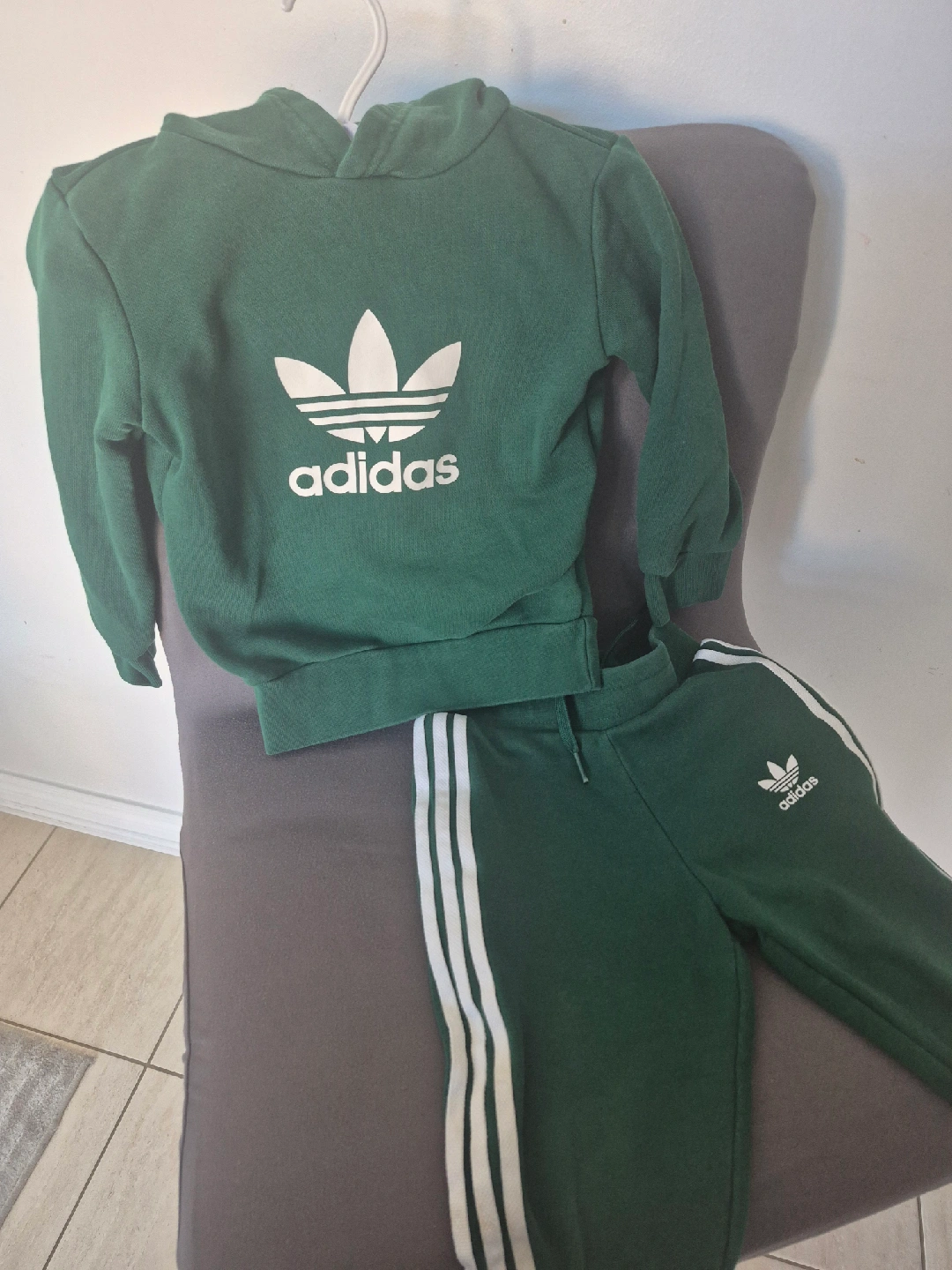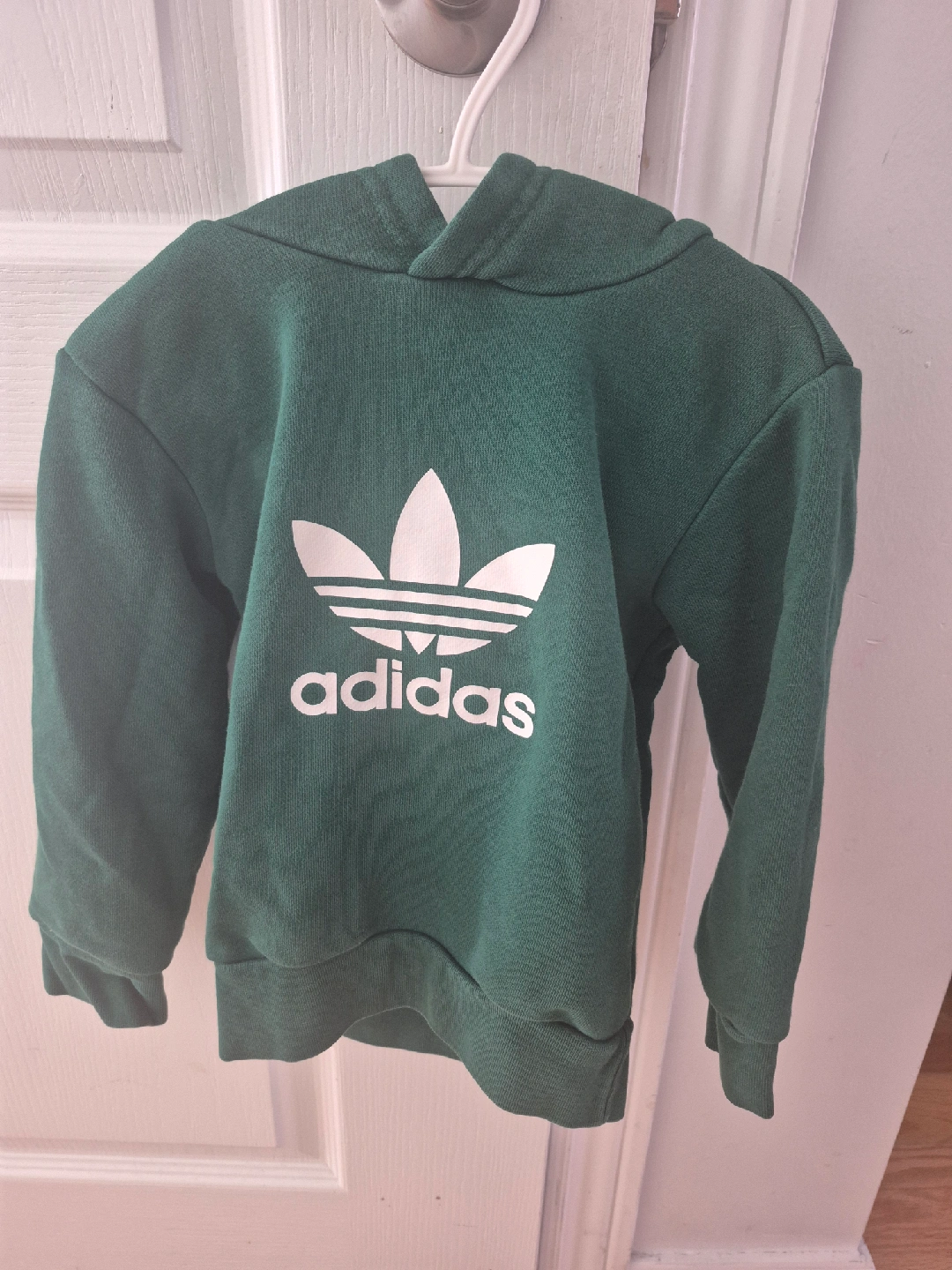 Selling a cute Adidas hoodie for kids in green! Perfect for keeping your little one warm and stylish. Also selling a Gap denim jacket and a Zara waterproof hooded jacket! All items are 18 to 24 months