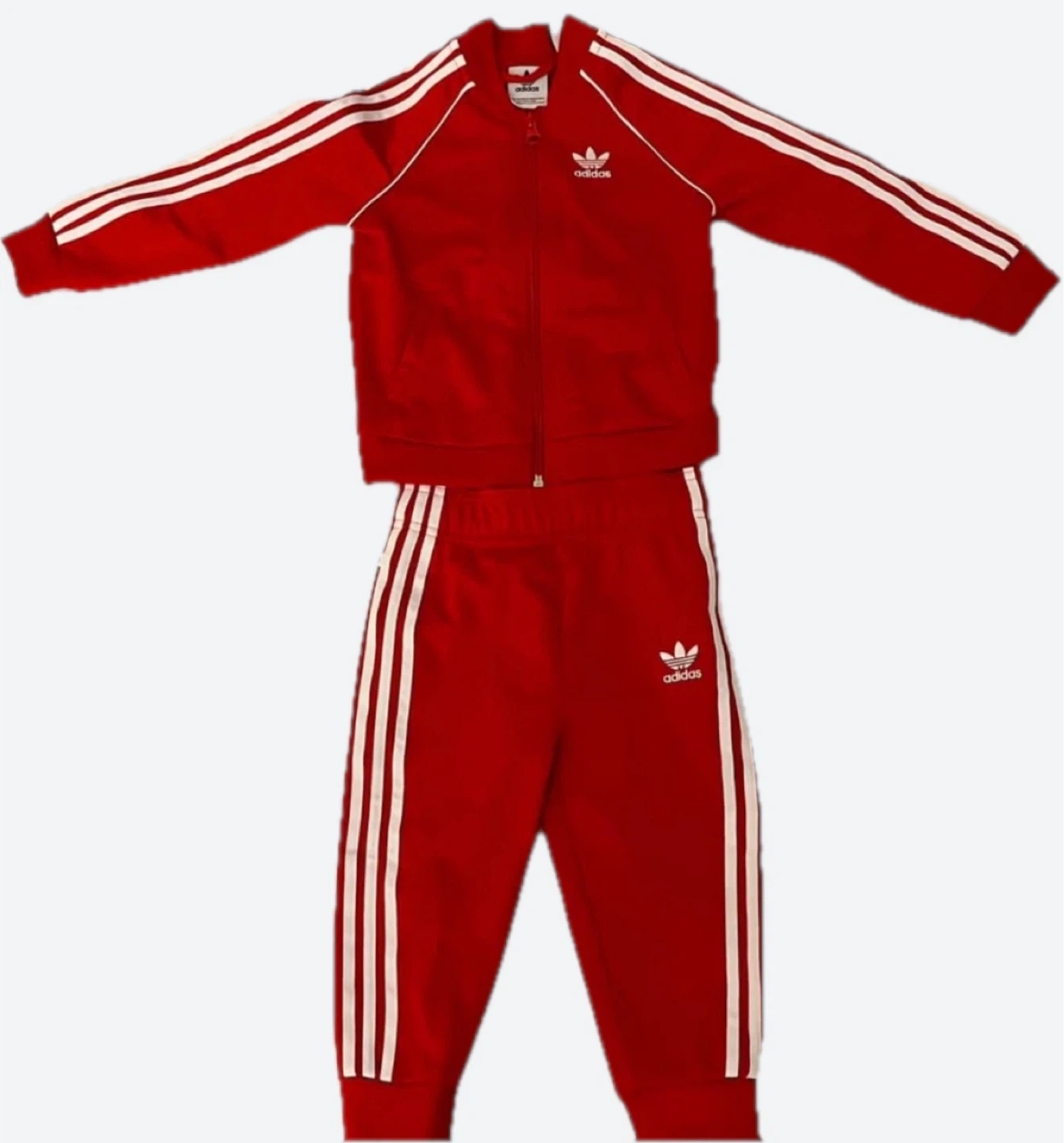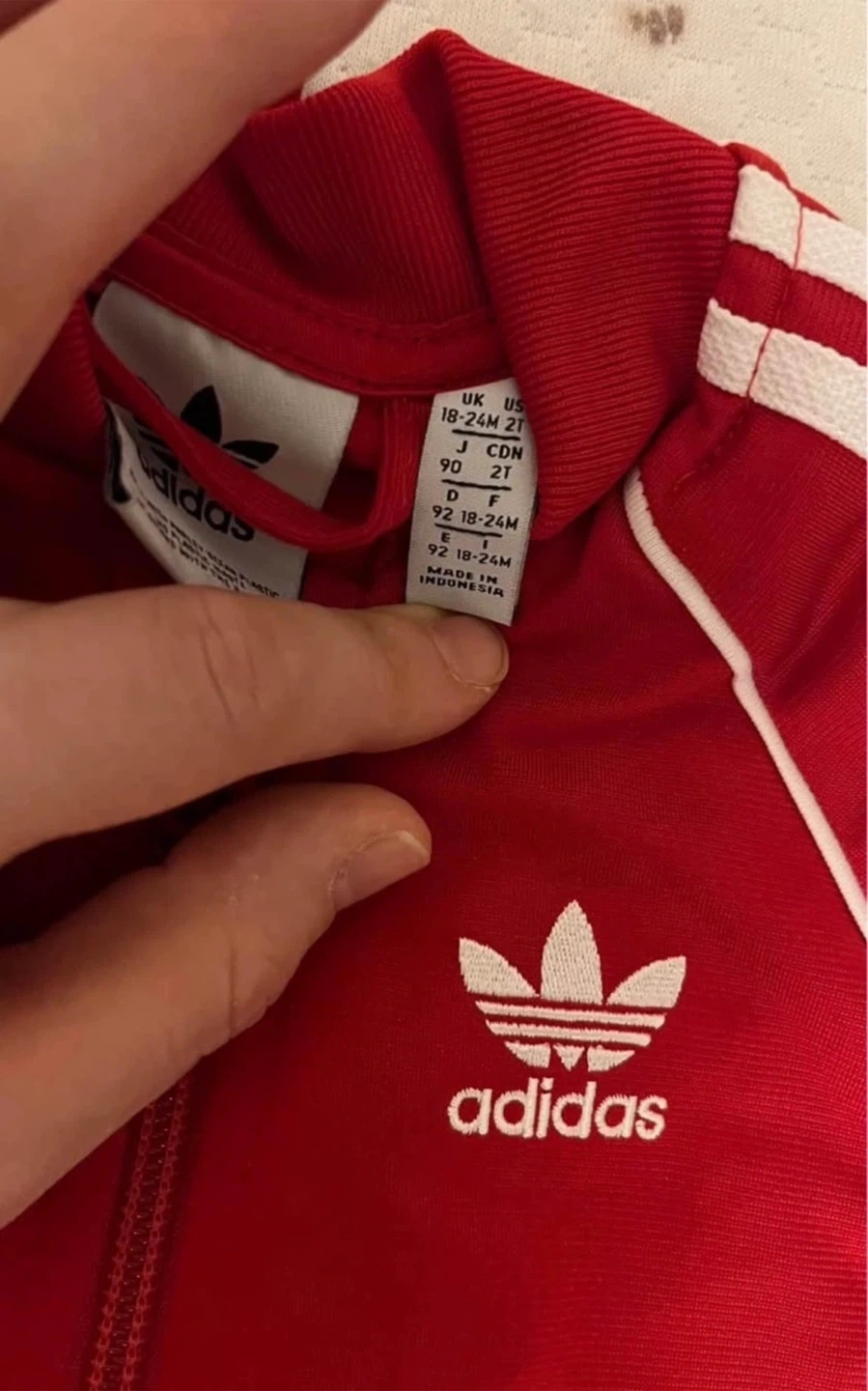 39A super cute Adidas kids tracksuit in red! It's in great condition and perfect for your little one. Size is 18-24 months (2T).