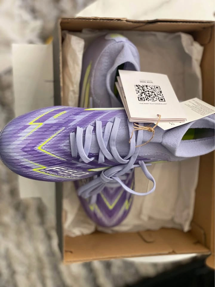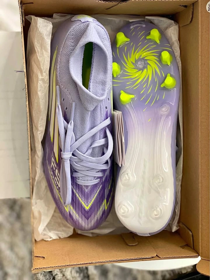 Adidas Lavender Soccer Cleats with White and Neon Accents