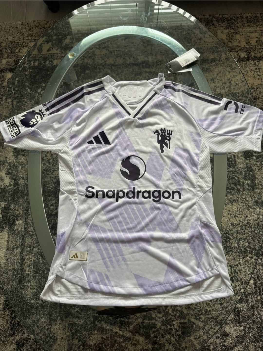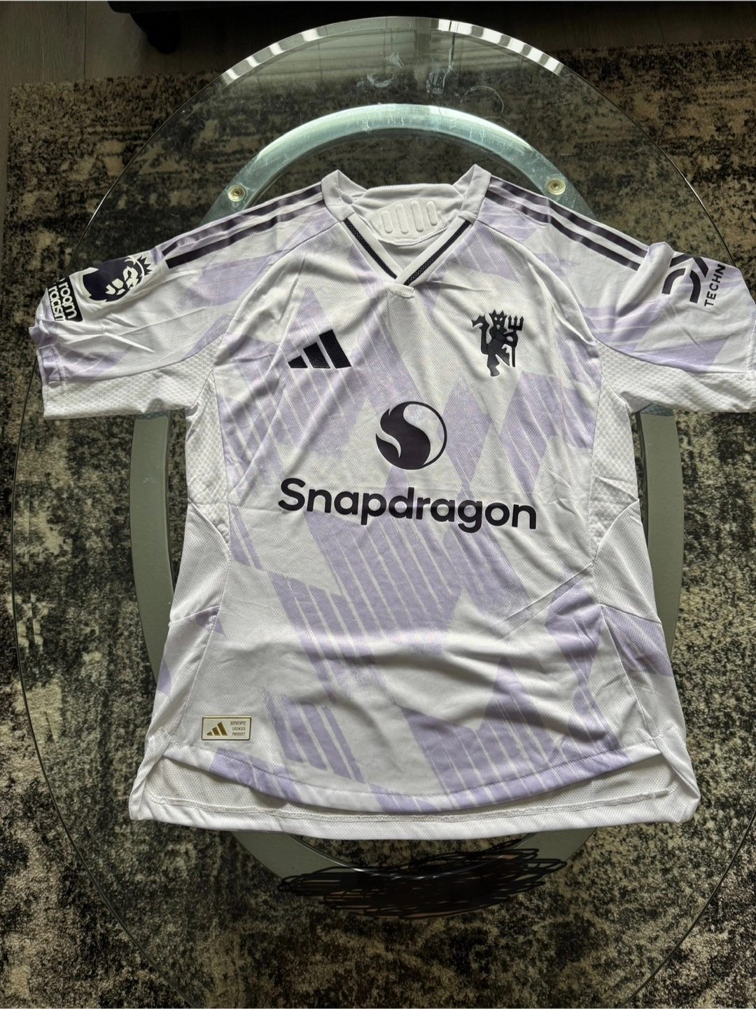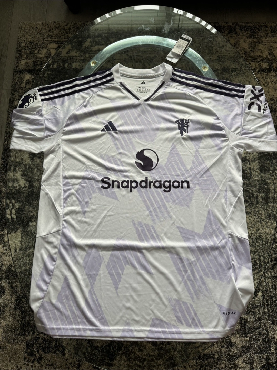 Adidas Manchester United Third Jersey. This jersey features the Adidas logo, the Manchester United crest, and the Snapdragon logo. It's Brand New and perfect for any fan! Mens 2XL Fan Version Mens Small Player Version Youth Large Player Version