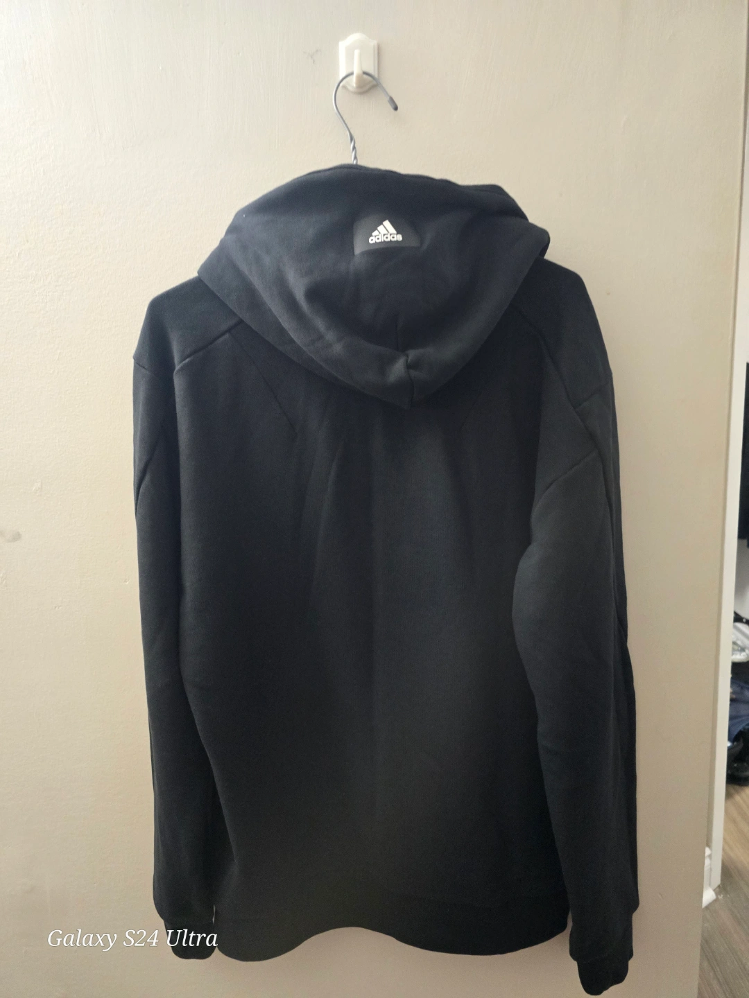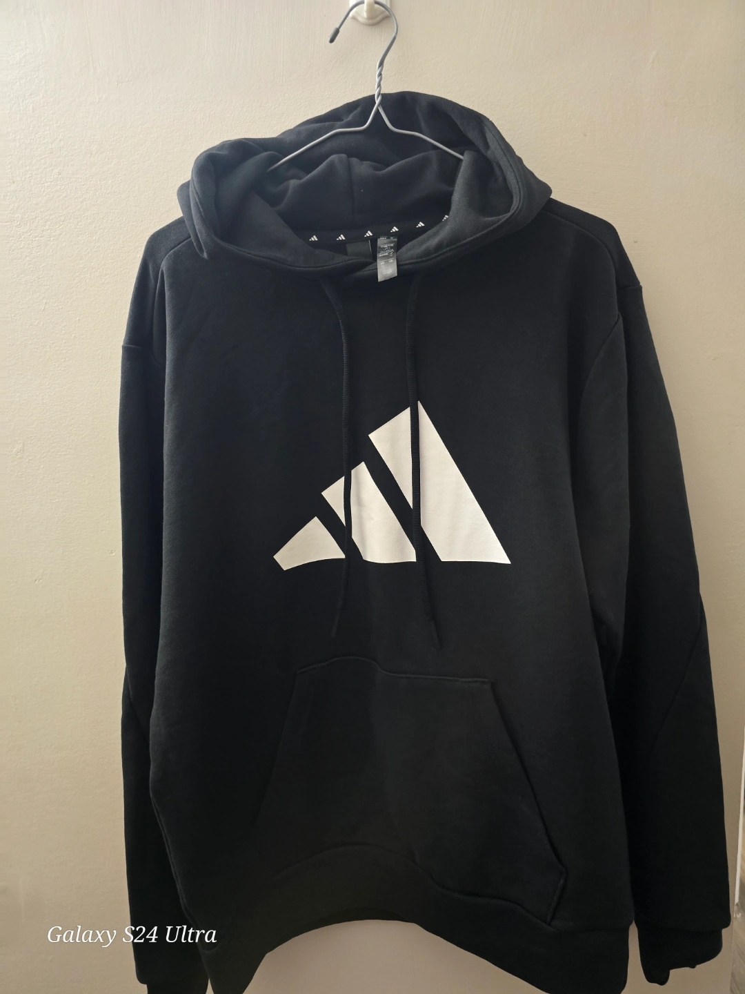 BRANDNEW Black Adidas hoodie. Men's size XL. Primegreen material. Features a large white Adidas logo on the front and smaller logo on the hood. Bought this in Japan last year, never been worn and never been washed.