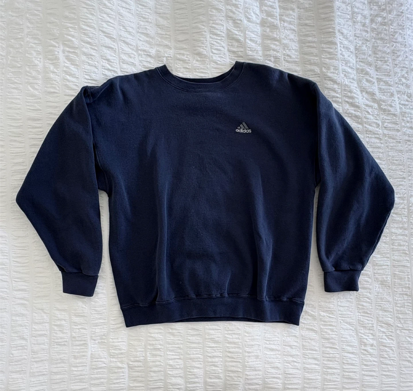Selling an Adidas crewneck sweatshirt in navy blue. It's in great shape and is listed as a large