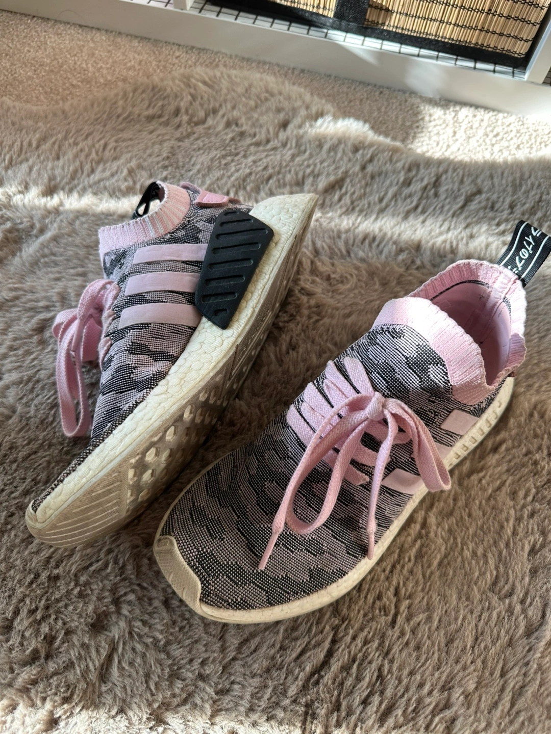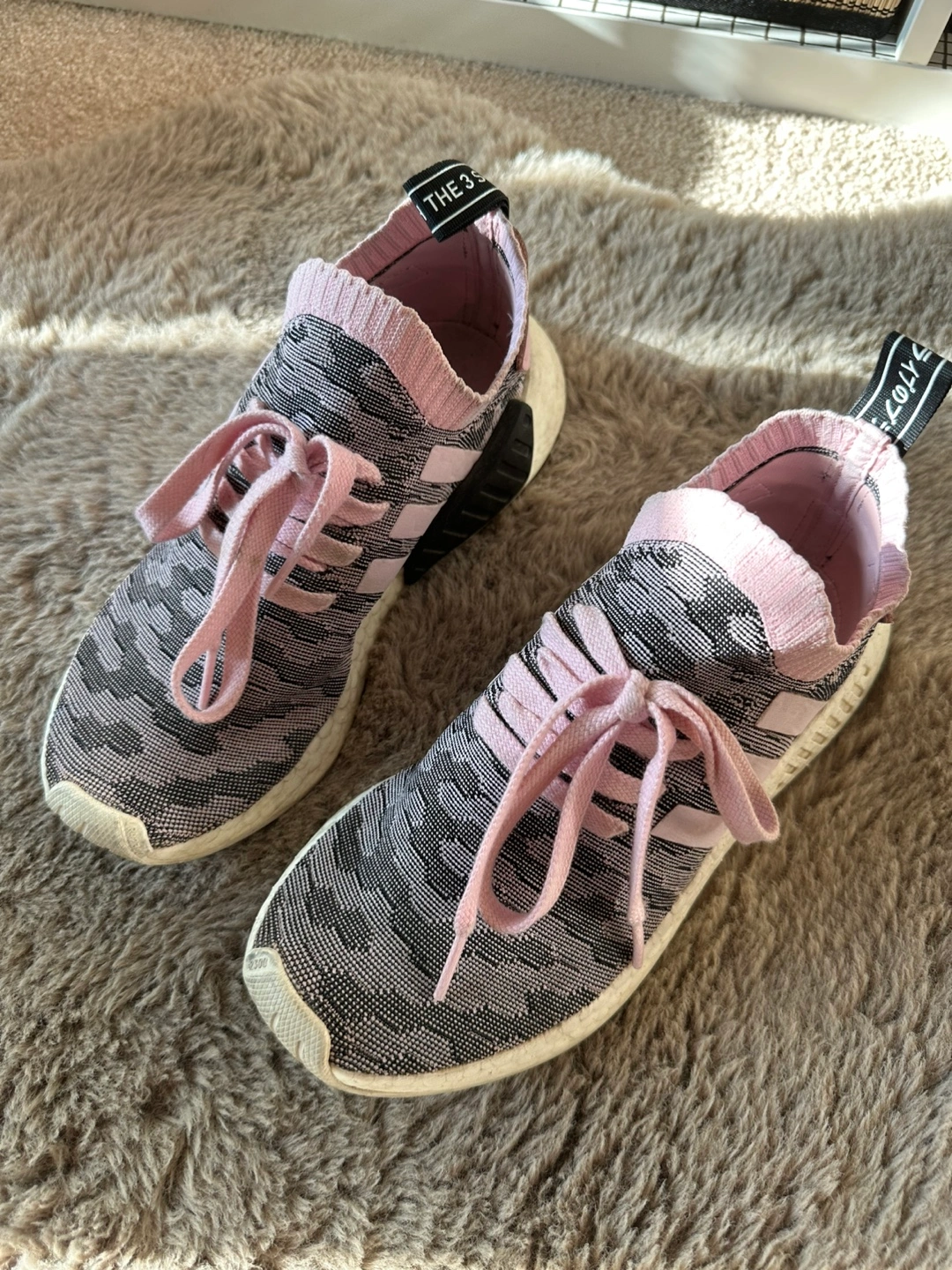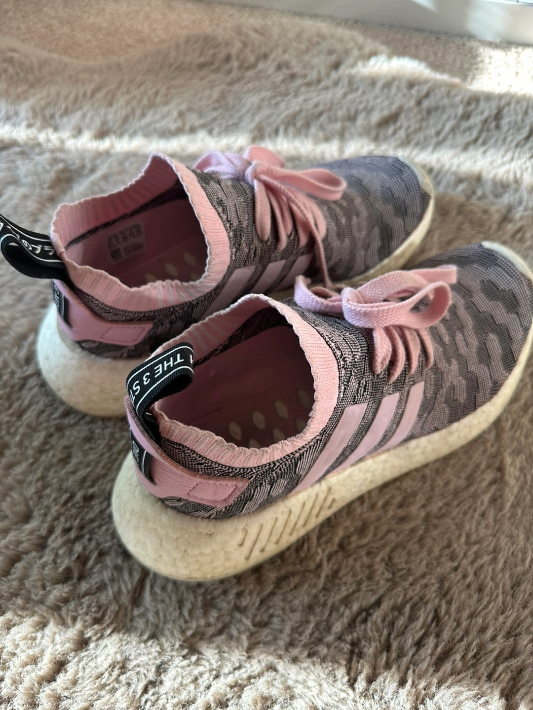 15Adidas NMD R1 sneakers in a lovely pink and grey colourway! These women's shoes are in great shape and ready for a new home. Perfect for adding a pop of colour to your everyday look