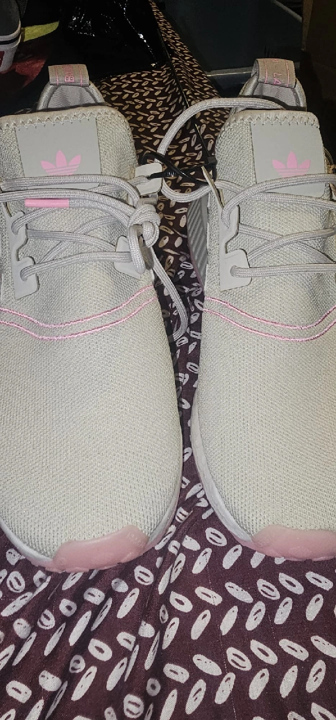 Selling a pair of Adidas NMD W1 women's sneakers! They are a lovely light grey colour with pink accents. Size 8.5 US. These shoes are in great condition and ready for a new home