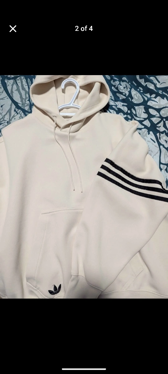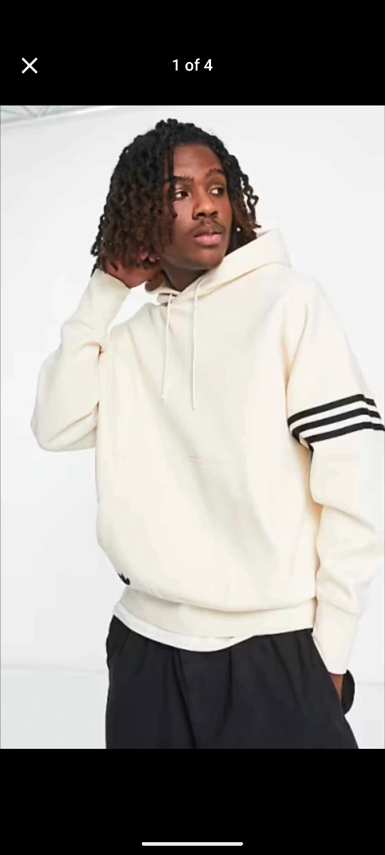 Selling an Adidas Originals Adicolor Neuclassics hoodie in a lovely off-white colour. It's a size small and features the classic three-stripe design on the sleeves. Great for adding a sporty touch to your everyday look!