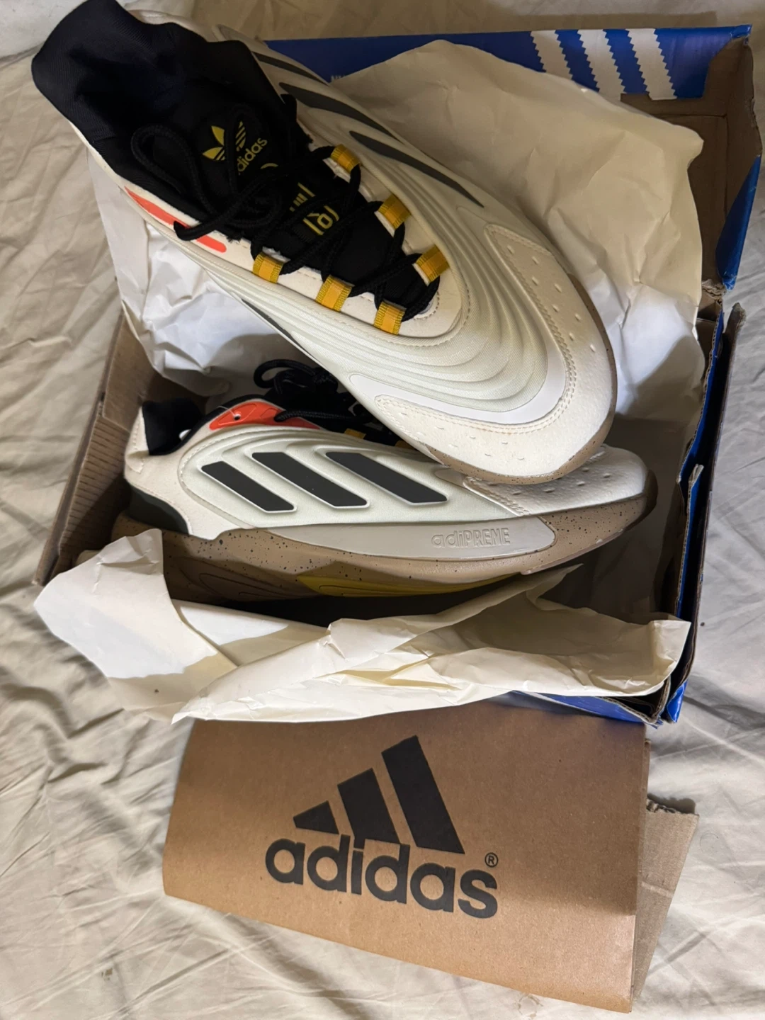 Selling a brand new pair of Adidas Ozelia wonder white shoes in US size 9.5! They come with the original box. Untouched