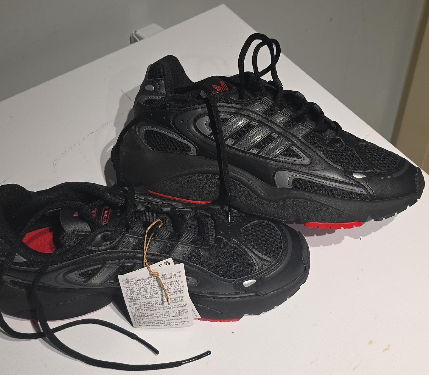 70Selling a pair of Adidas Ozmillen sneakers in black. These are in great condition and ready for a new home! They feature a sleek design with subtle red accents on the sole. Perfect for everyday wear or hitting the gym.