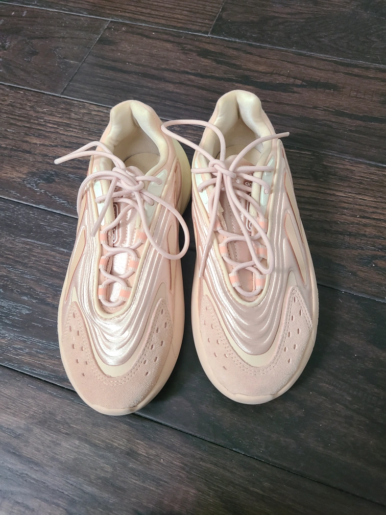 211Stylish Adidas Ozweego Halo sneakers size 5.5. Pale pink colourway. Lace-up closure. Comfortable and trendy design. Great for everyday wear. regular price 130. if ad is up this is available. cash and pick up only.