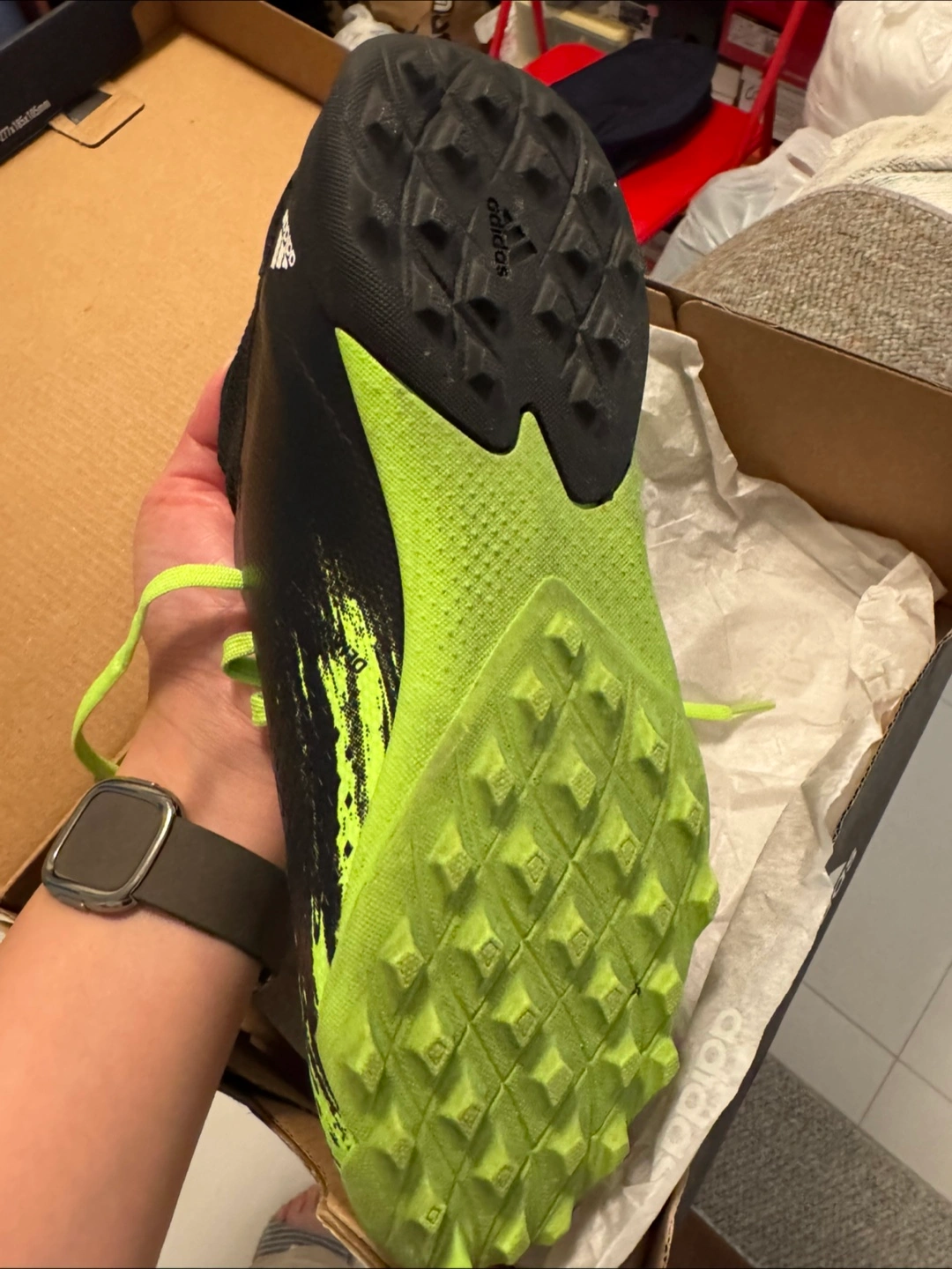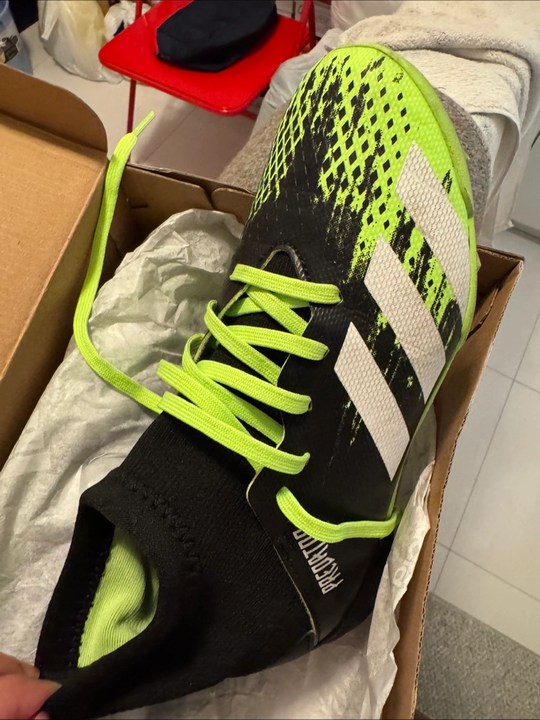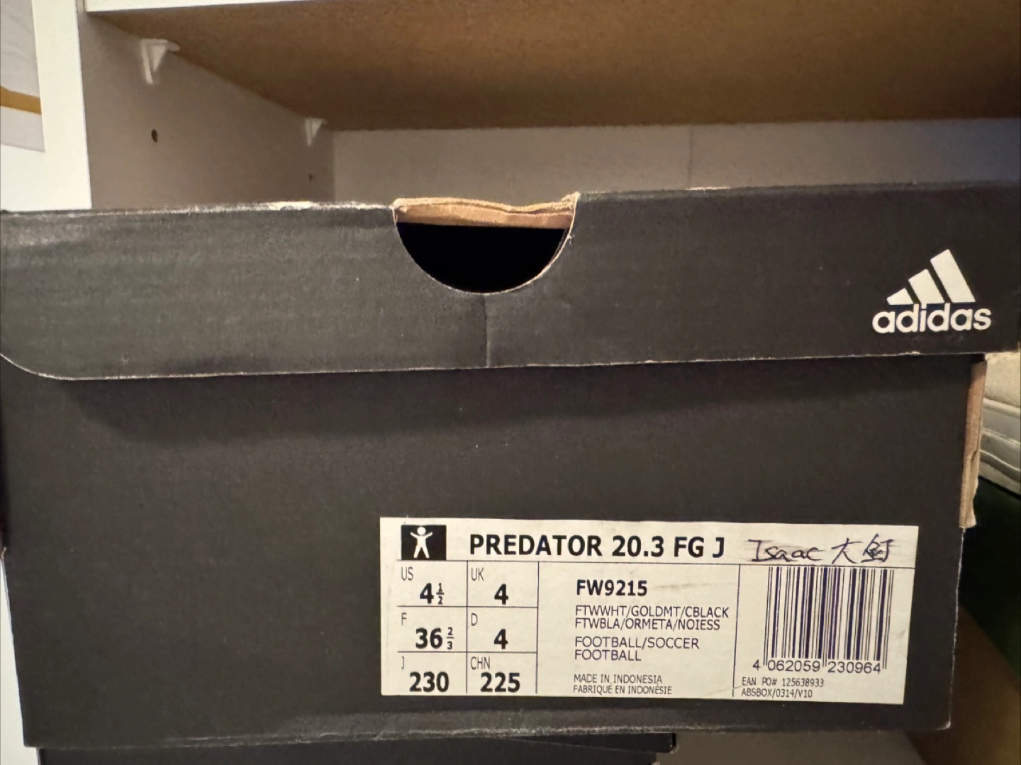 10Adidas Predator 20.3 FG J soccer cleats in US size 4.5. These cleats are in great shape and come with the original box. Perfect for young soccer players looking for a comfortable and stylish pair of cleats!