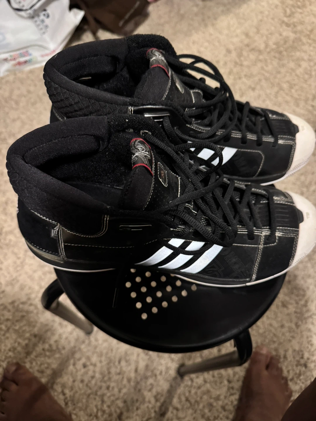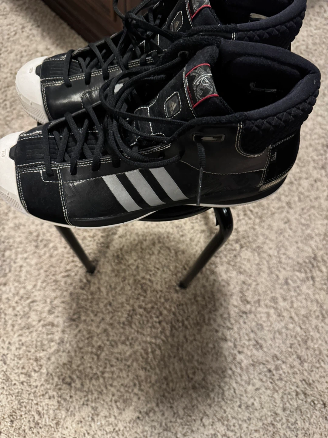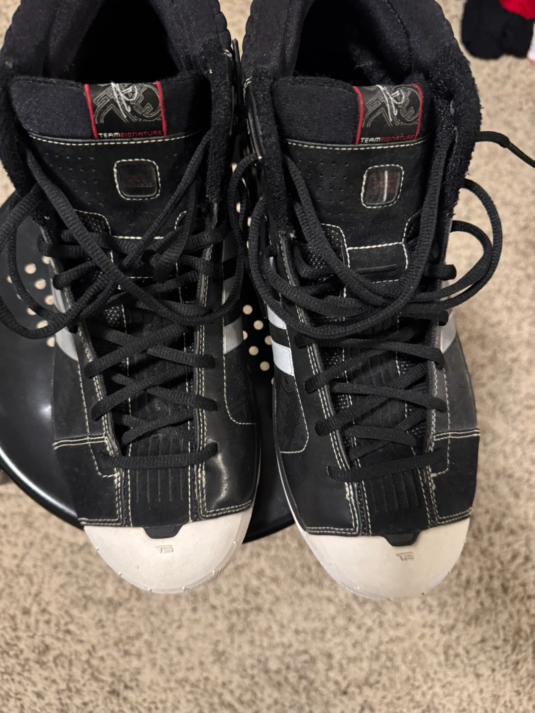 10Selling a pair of Adidas Pro Model Team Signature basketball shoes Size 12. They are black with white stripes and the Adidas logo on the back. Great for basketball or just casual wear!