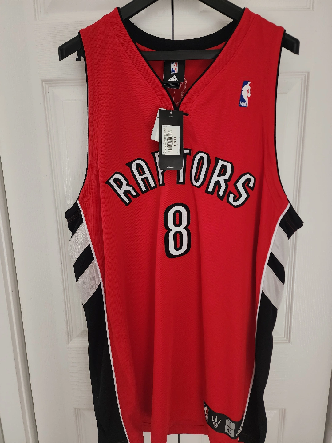 Selling a brand new with tags Adidas Raptors Calderon #8 jersey in size 48! The jersey is red and made of 100% polyester. Original price tag, never worn.